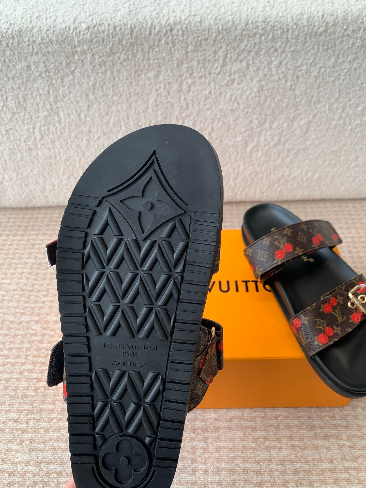 Bom Dia Flat Comfort Mule LV x TM Brown Sheepskin Mix Cherry Motif 319378