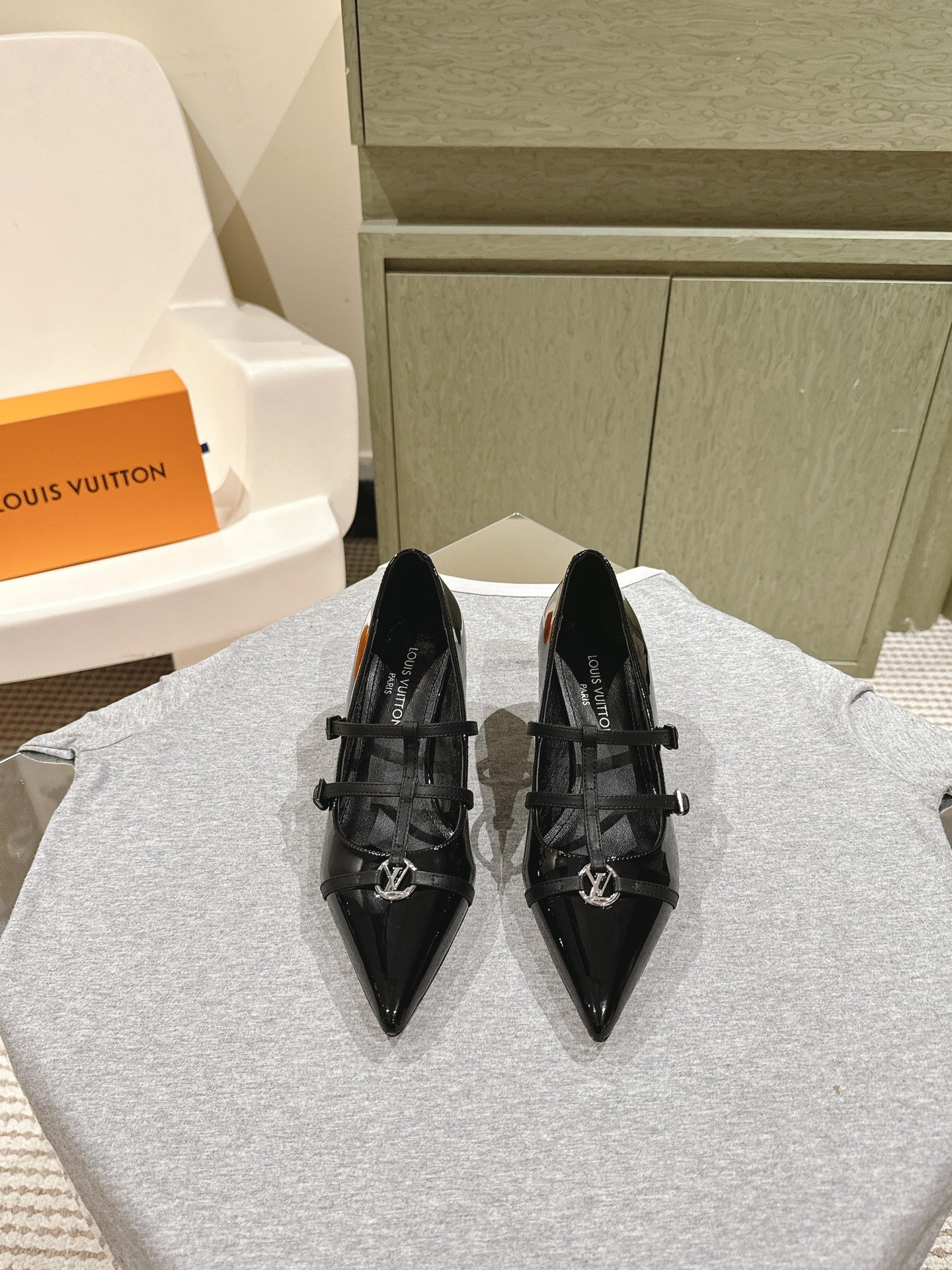 HIGH PUMP 45MM IN BLACK CALFSKIN WITH BLACK STRAPS