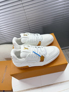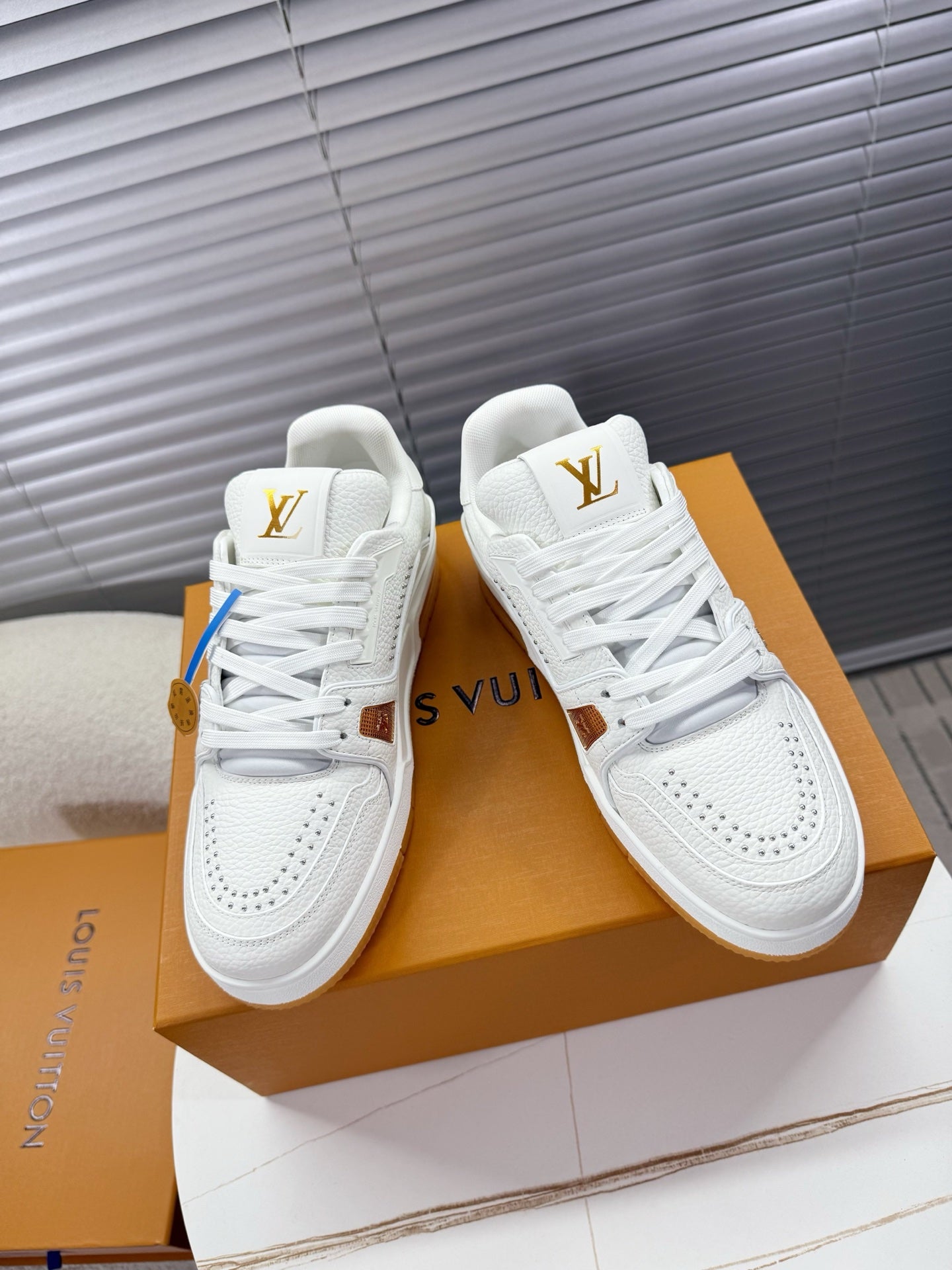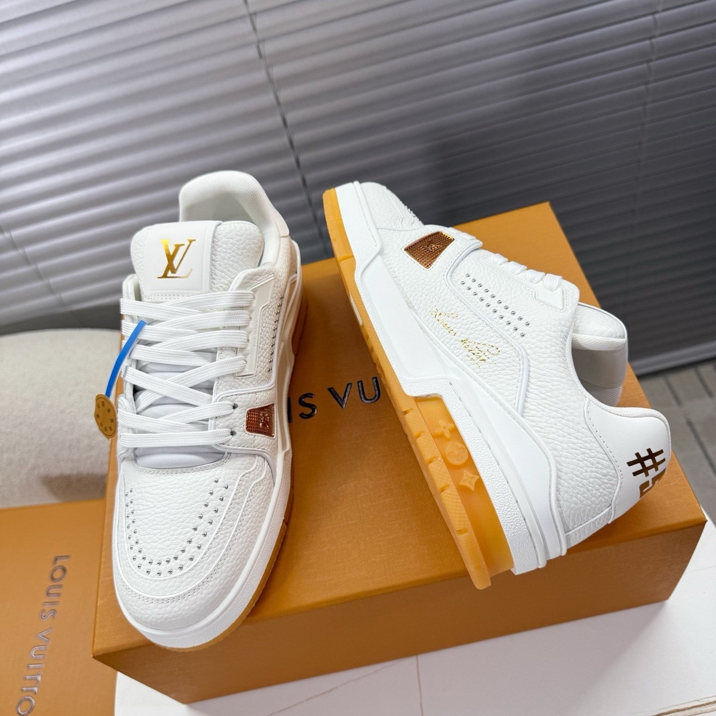 LV 1AHTGR Trainer Sports Shoes White Orange Grained Calfskin 511758