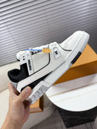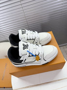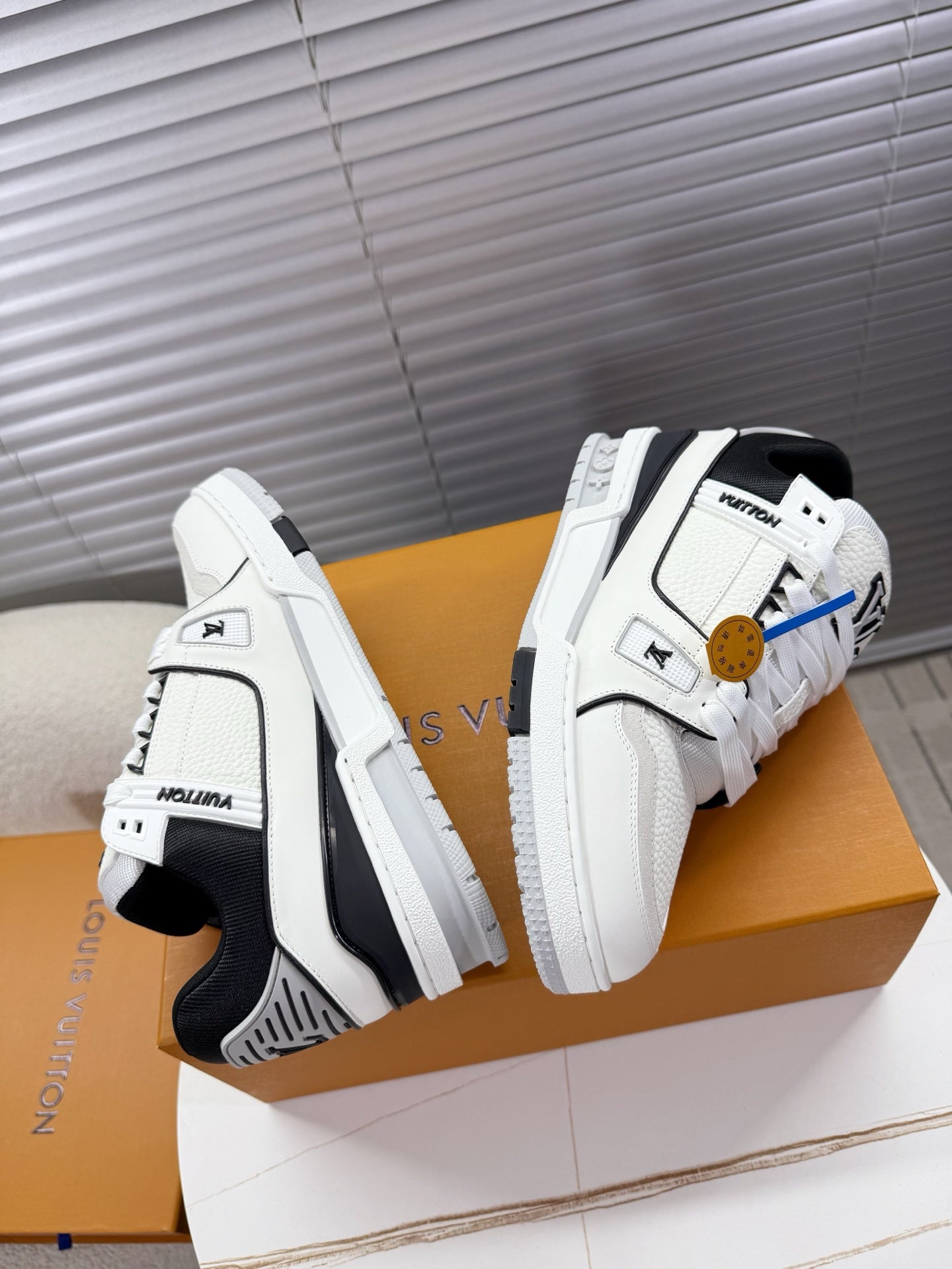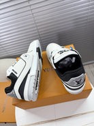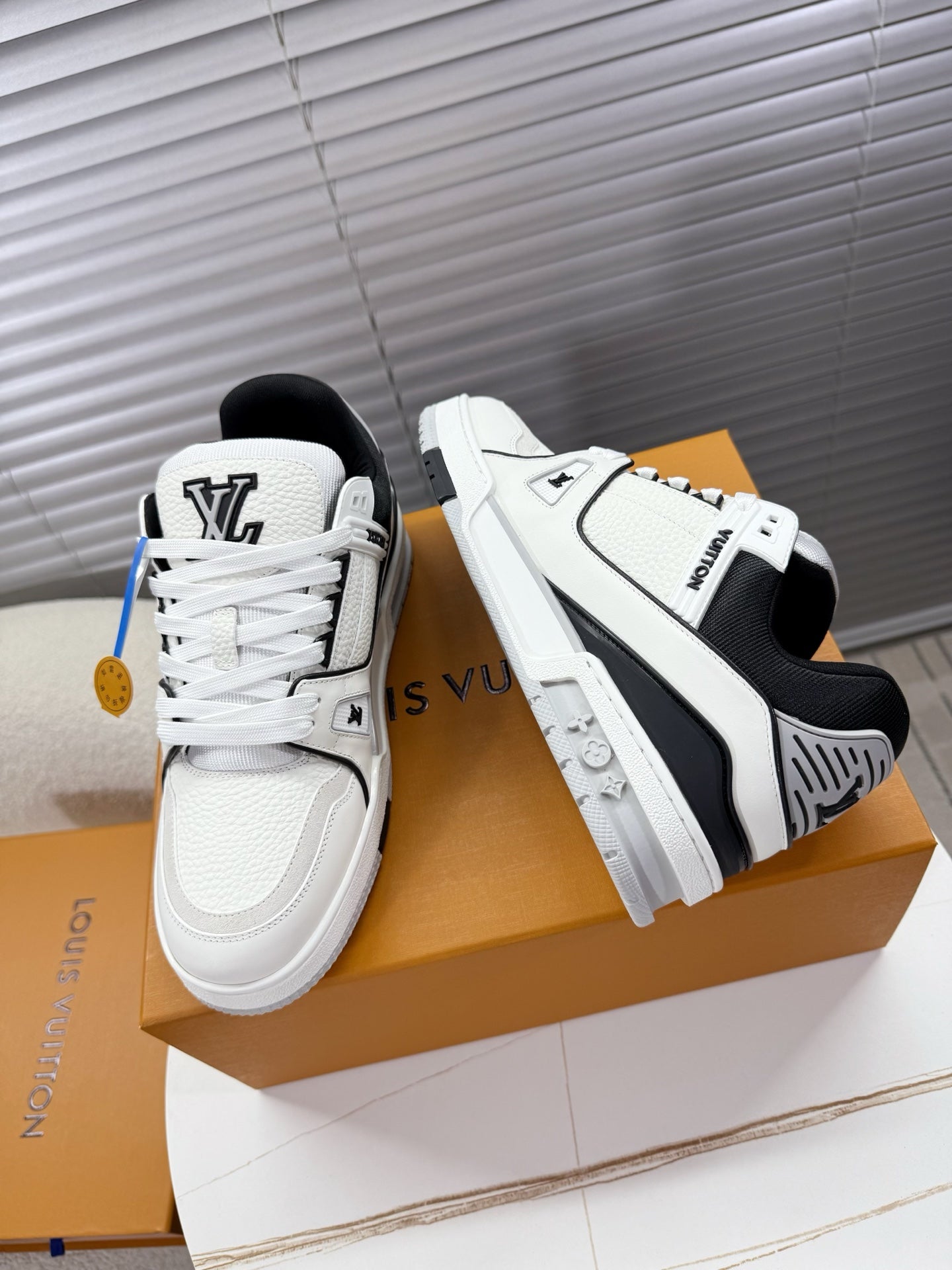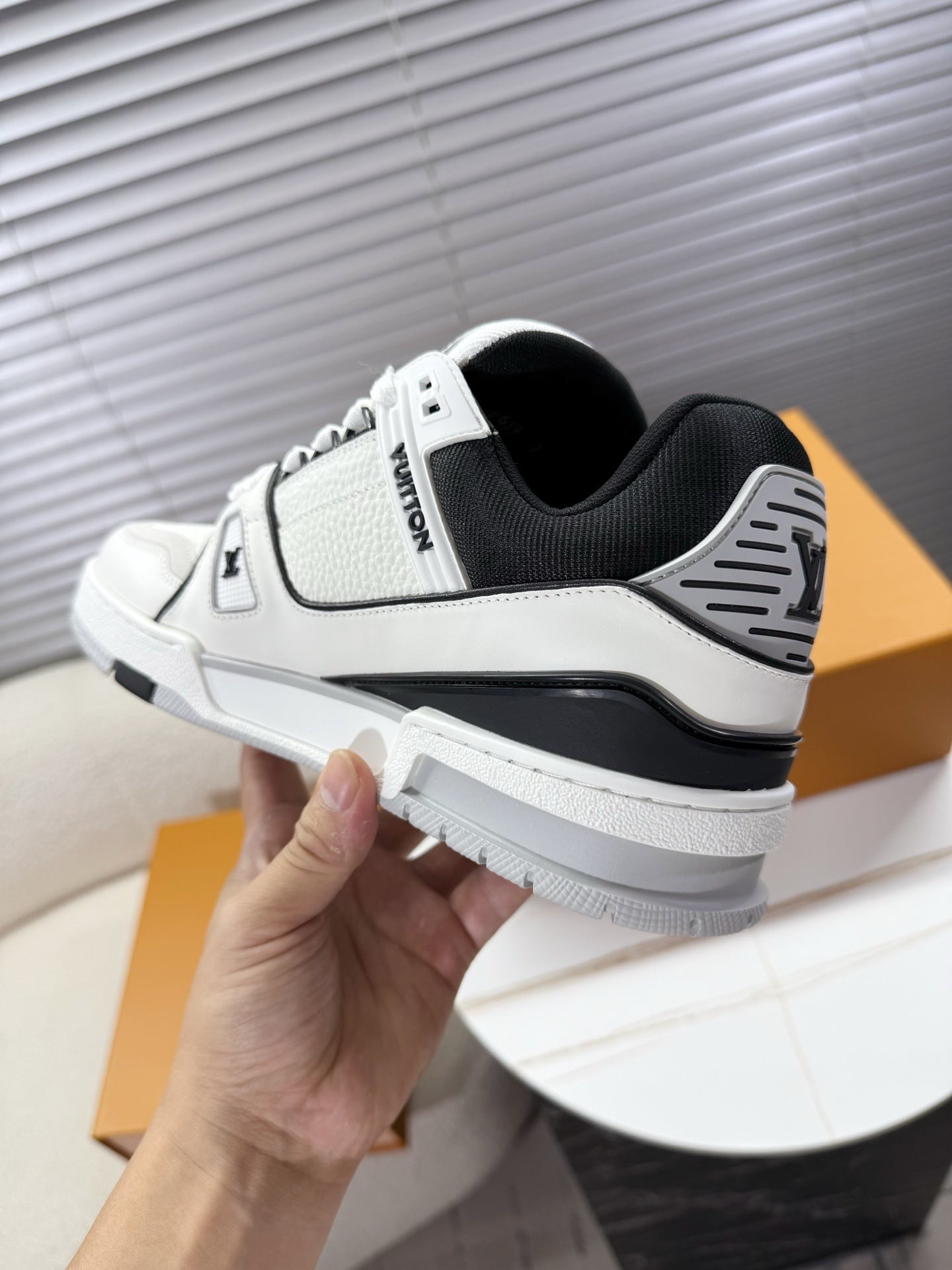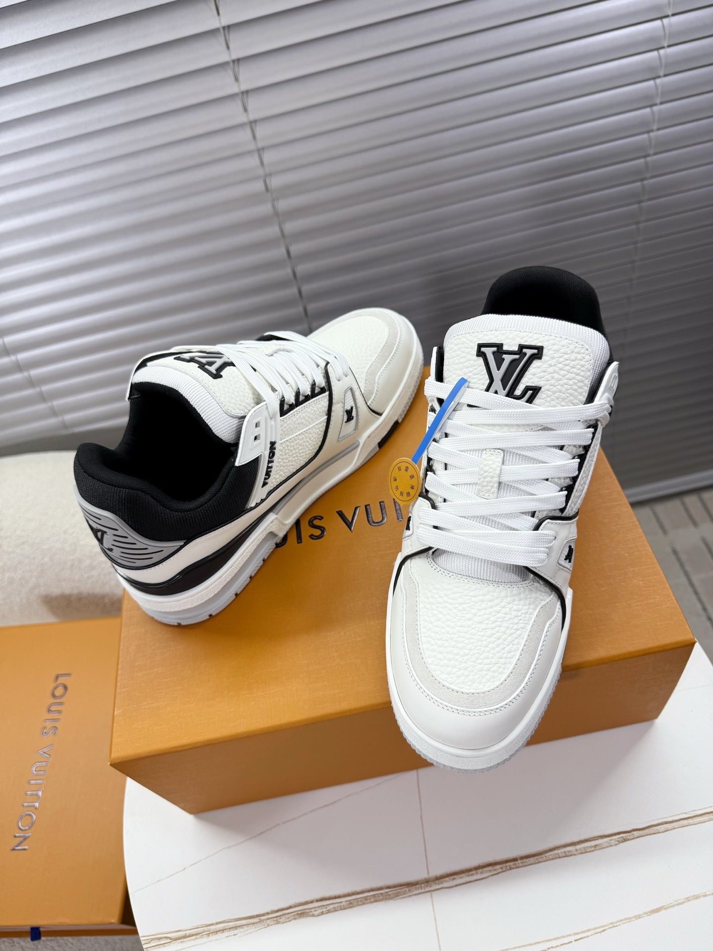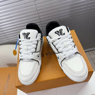 LV 1AIJ41 Trainer Sports Shoes White Black Grained Calfskin 511755