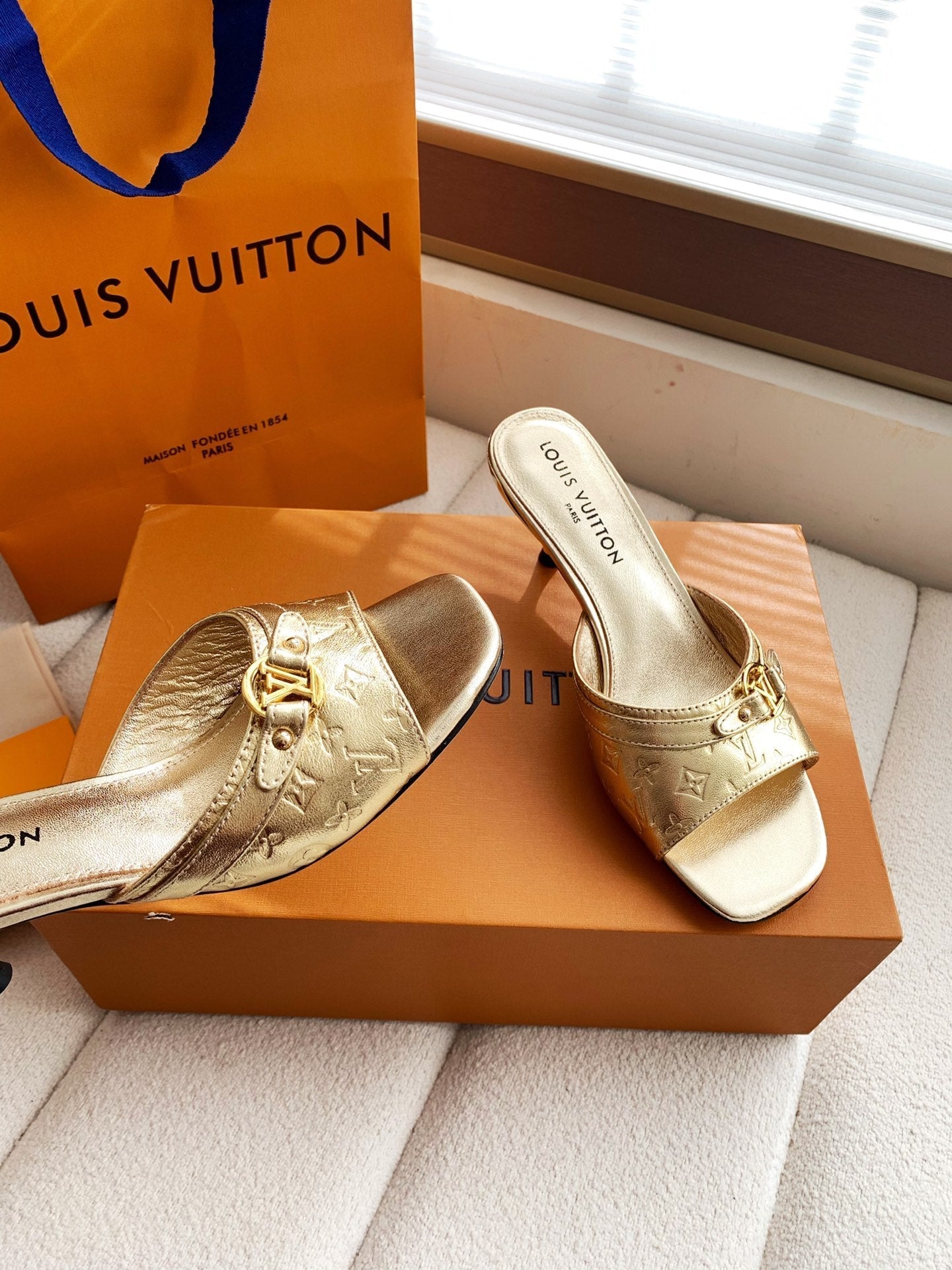 LV 26s High Heels 55 Slippers Gold Metallic Sheepskin 614984