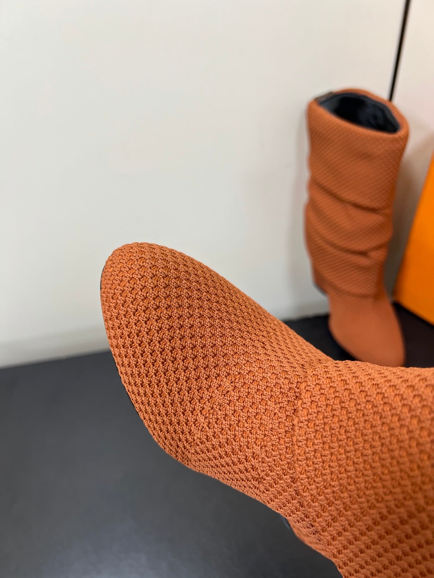 LV 26s Mid-Calf Boots 110 Camel Brown Knit Fabric 619401