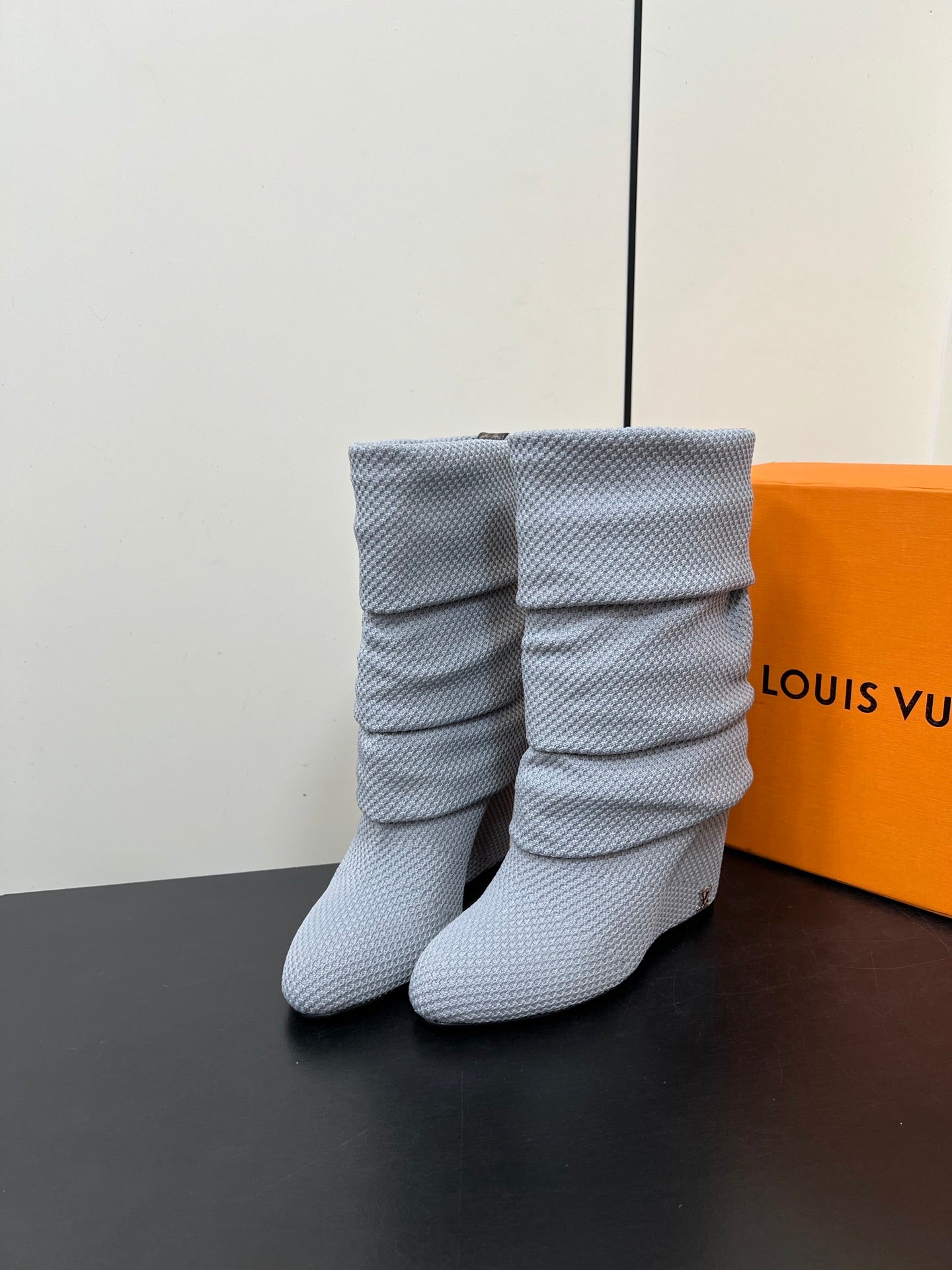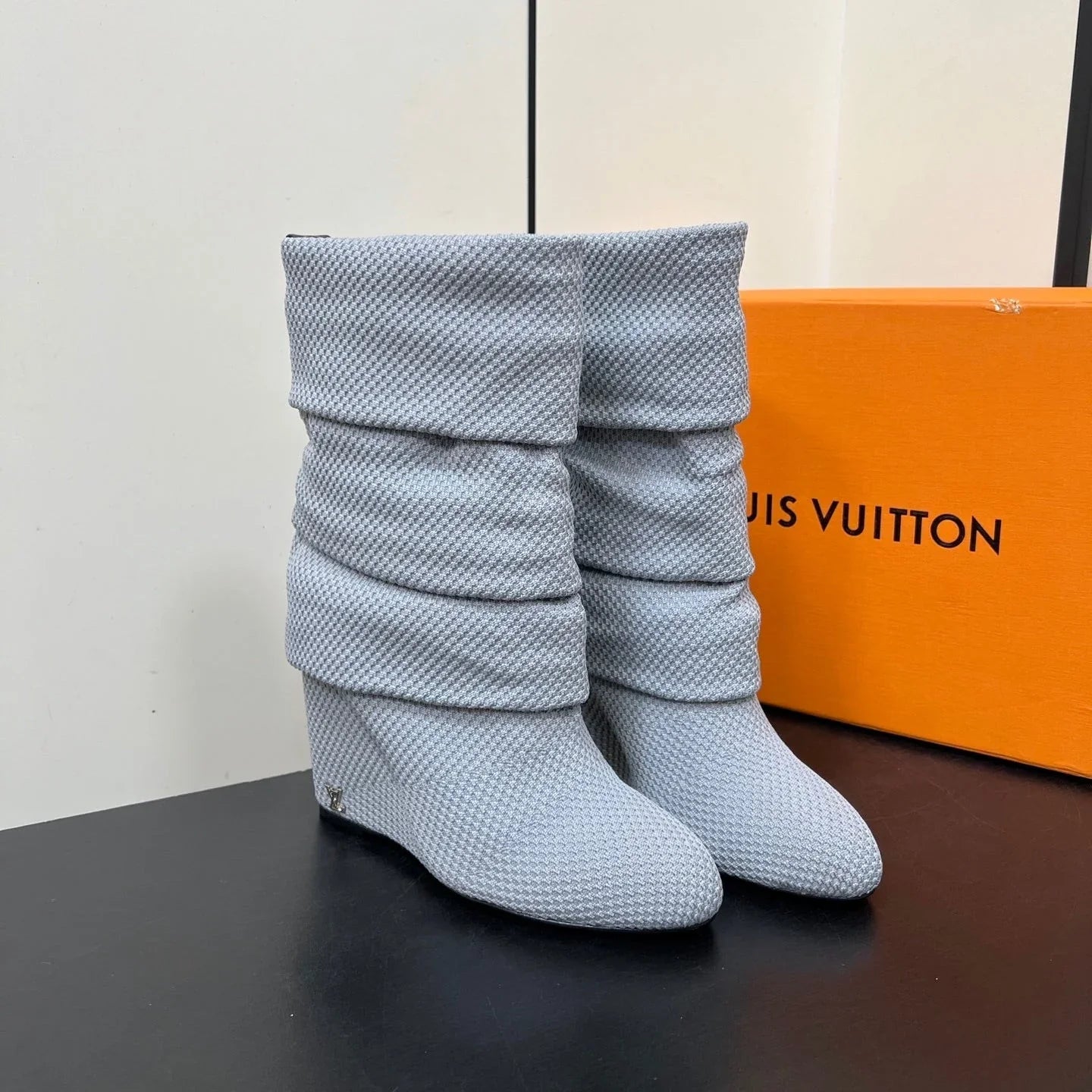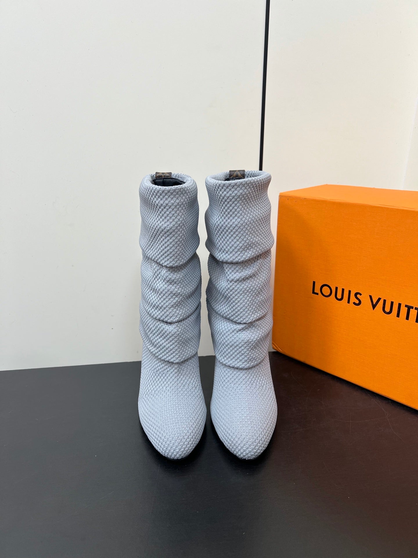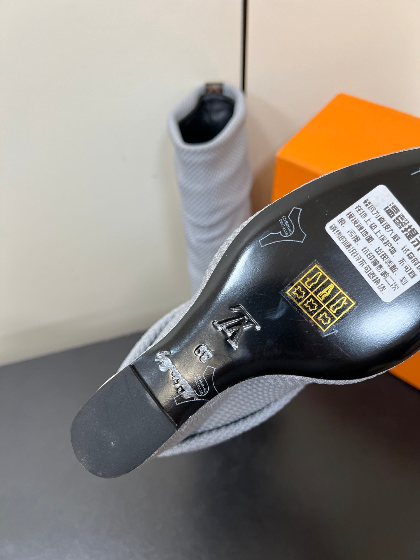 LV 26s Mid-Calf Boots 110 Gray Knit Fabric 619402