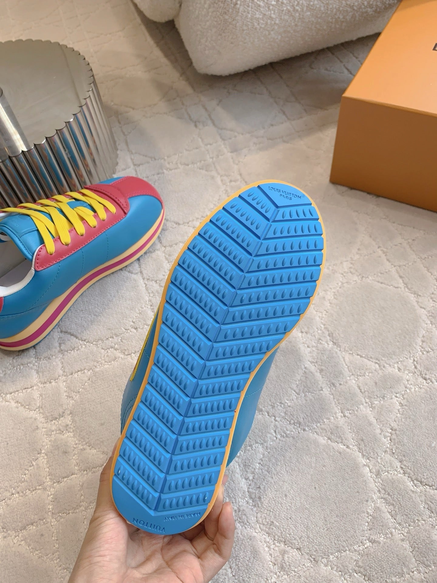 Color: Dark Blue, Yellow, Red