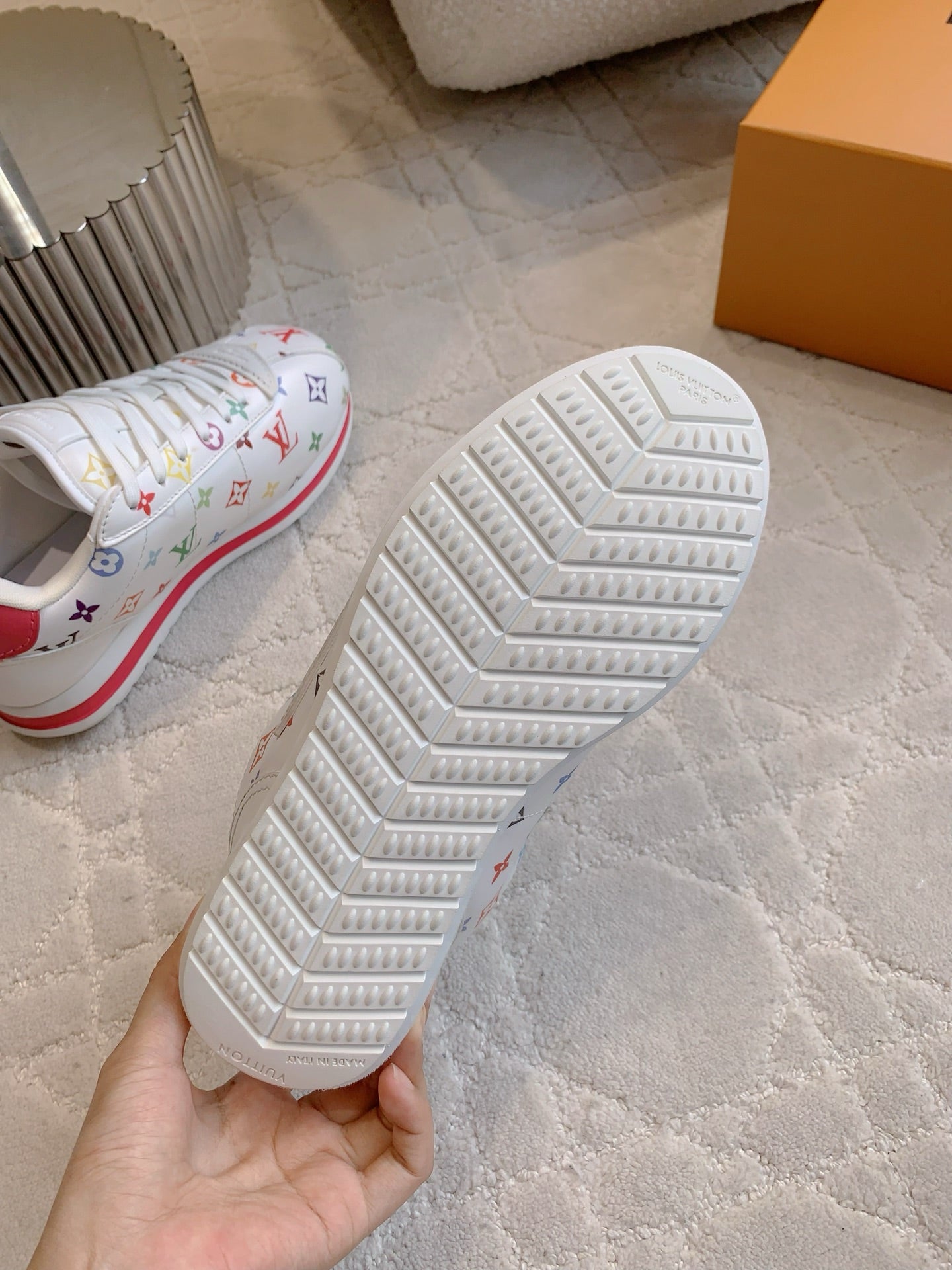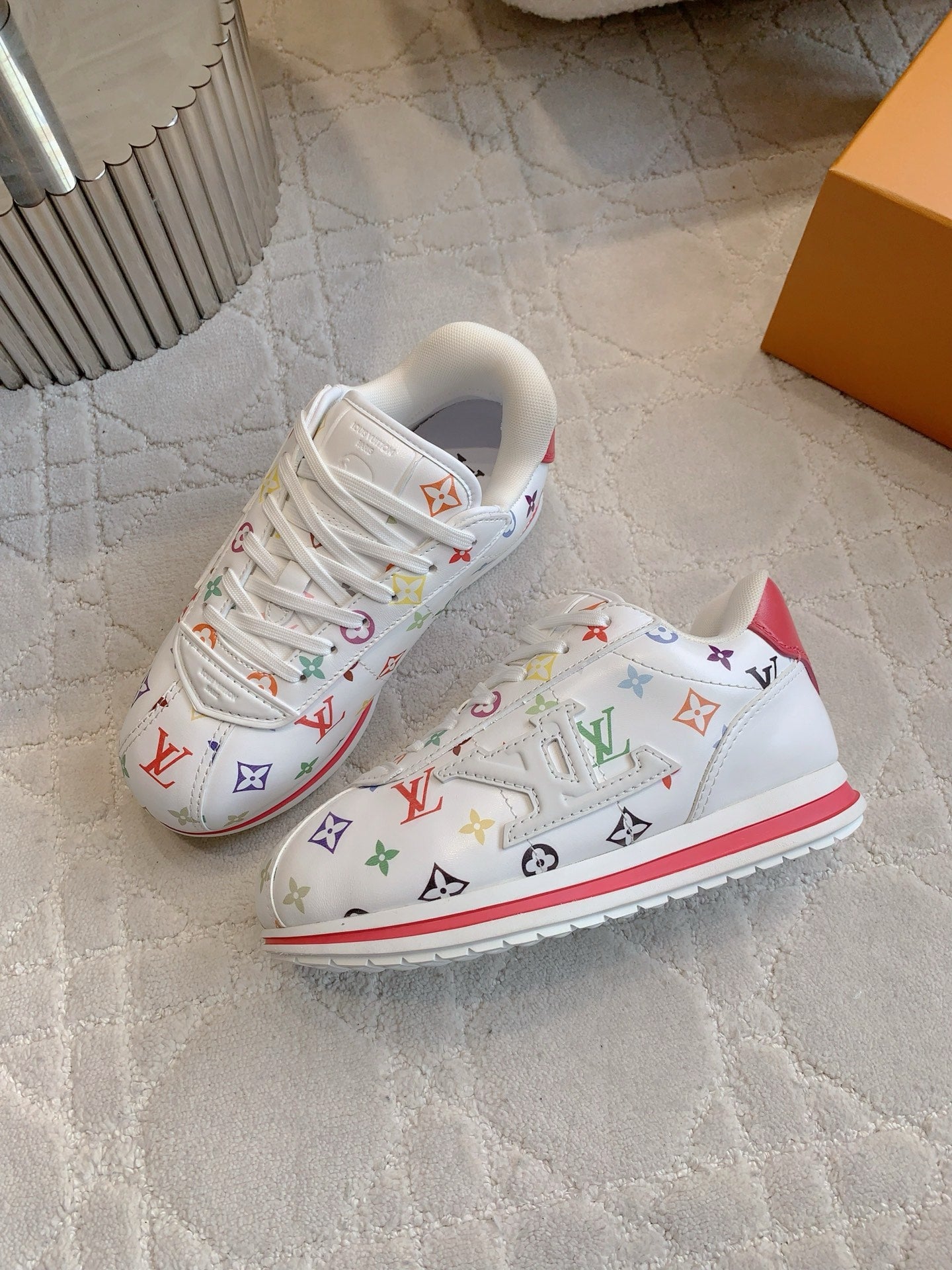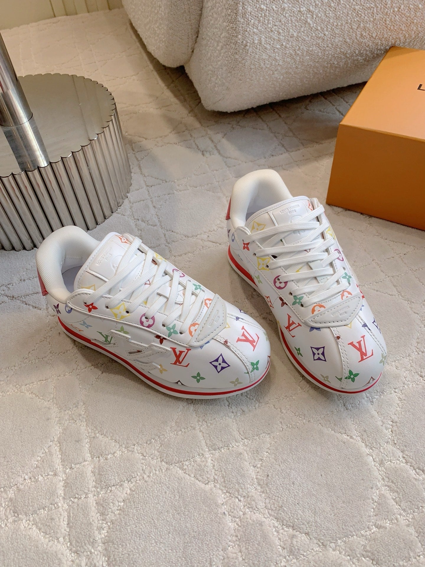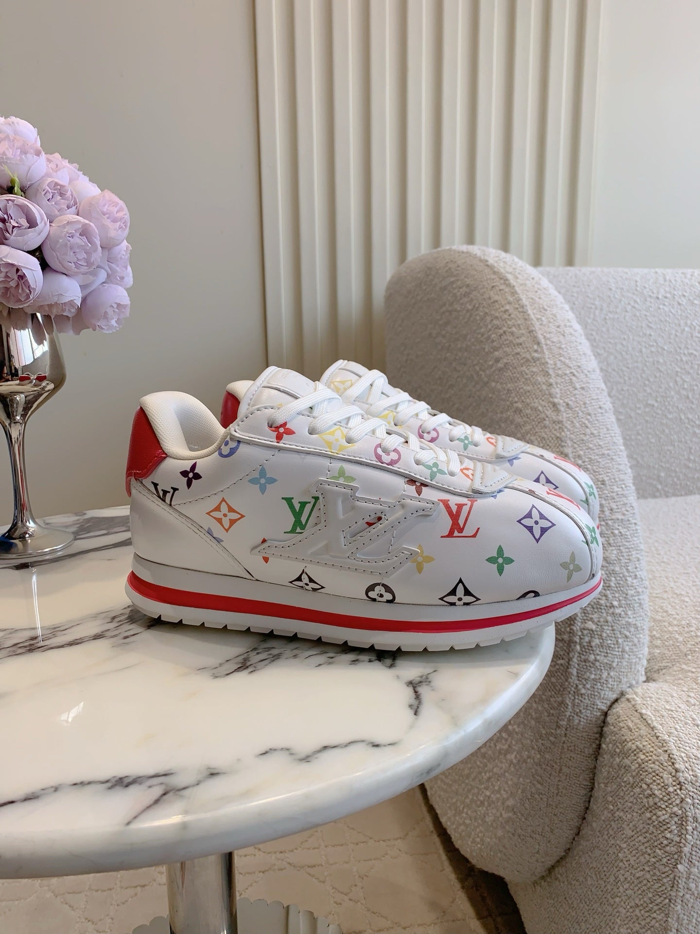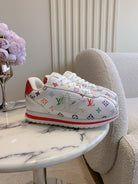 LV BUTTERSOFT Sneaker White Mix Red Monogram-Printed Lambskin 516883