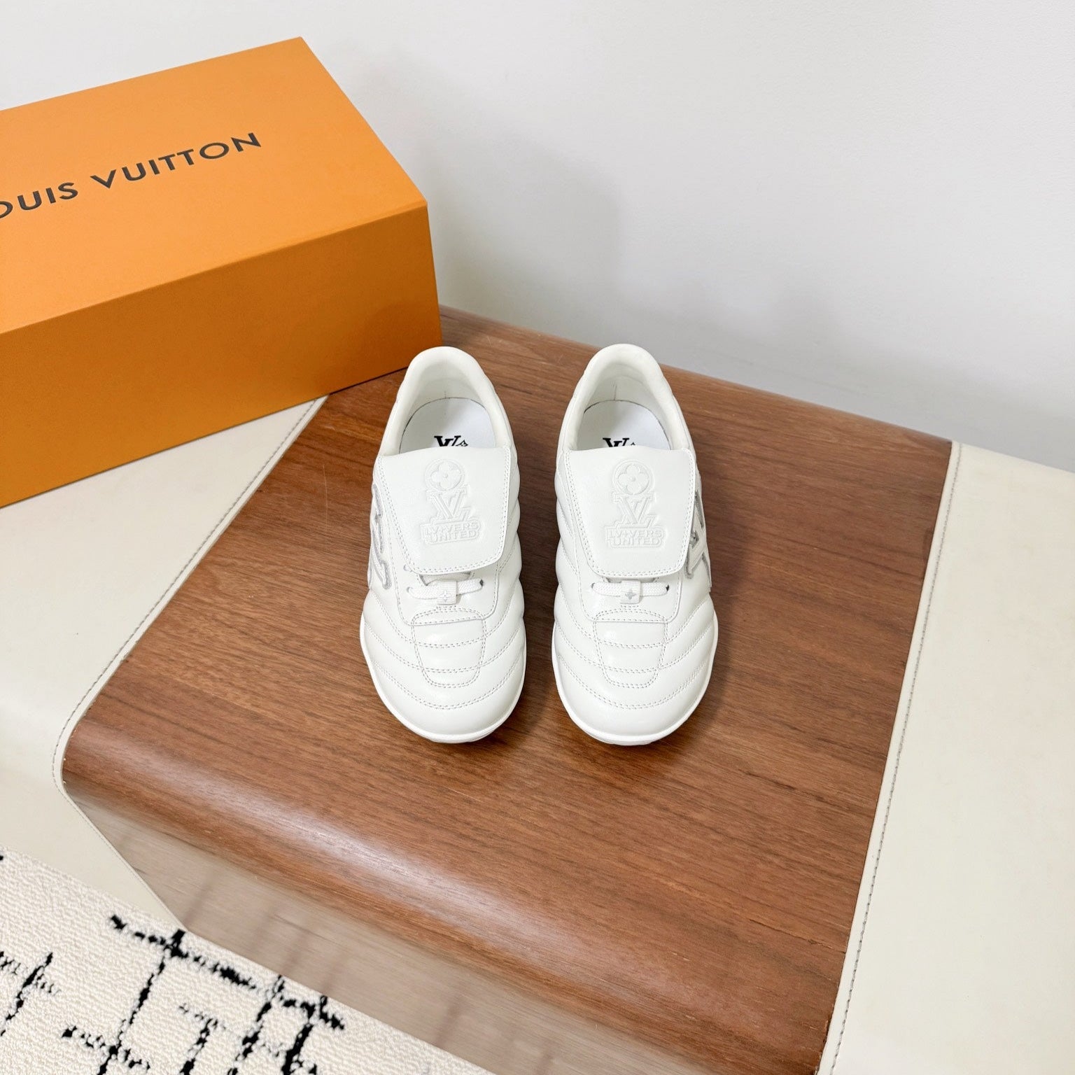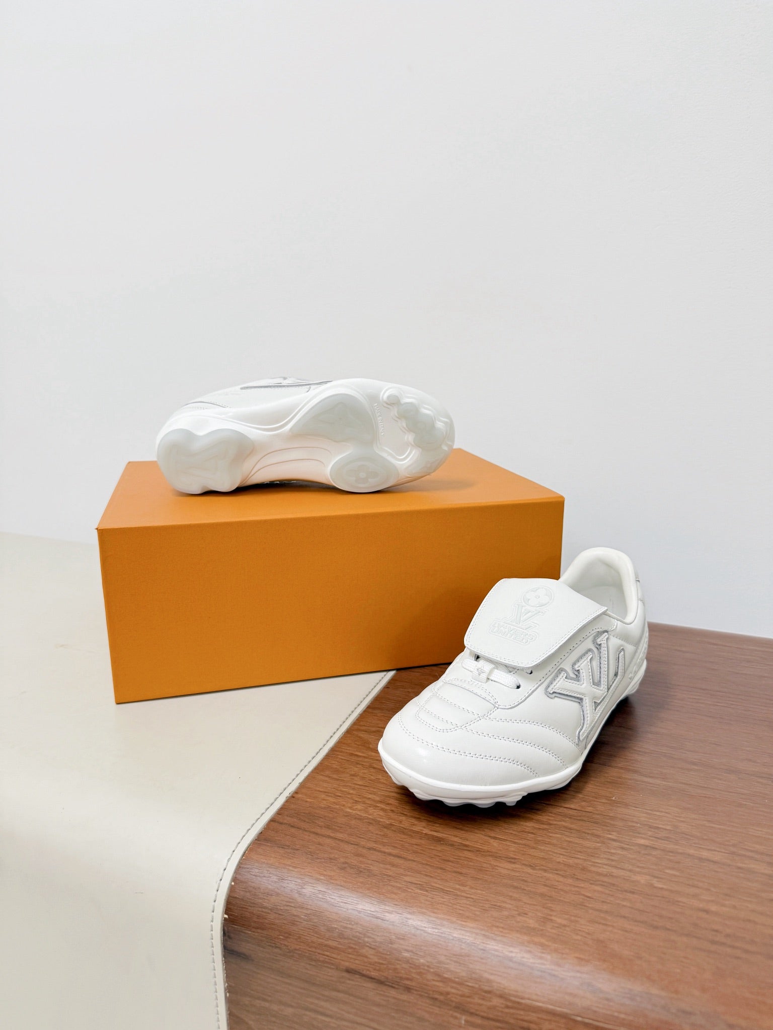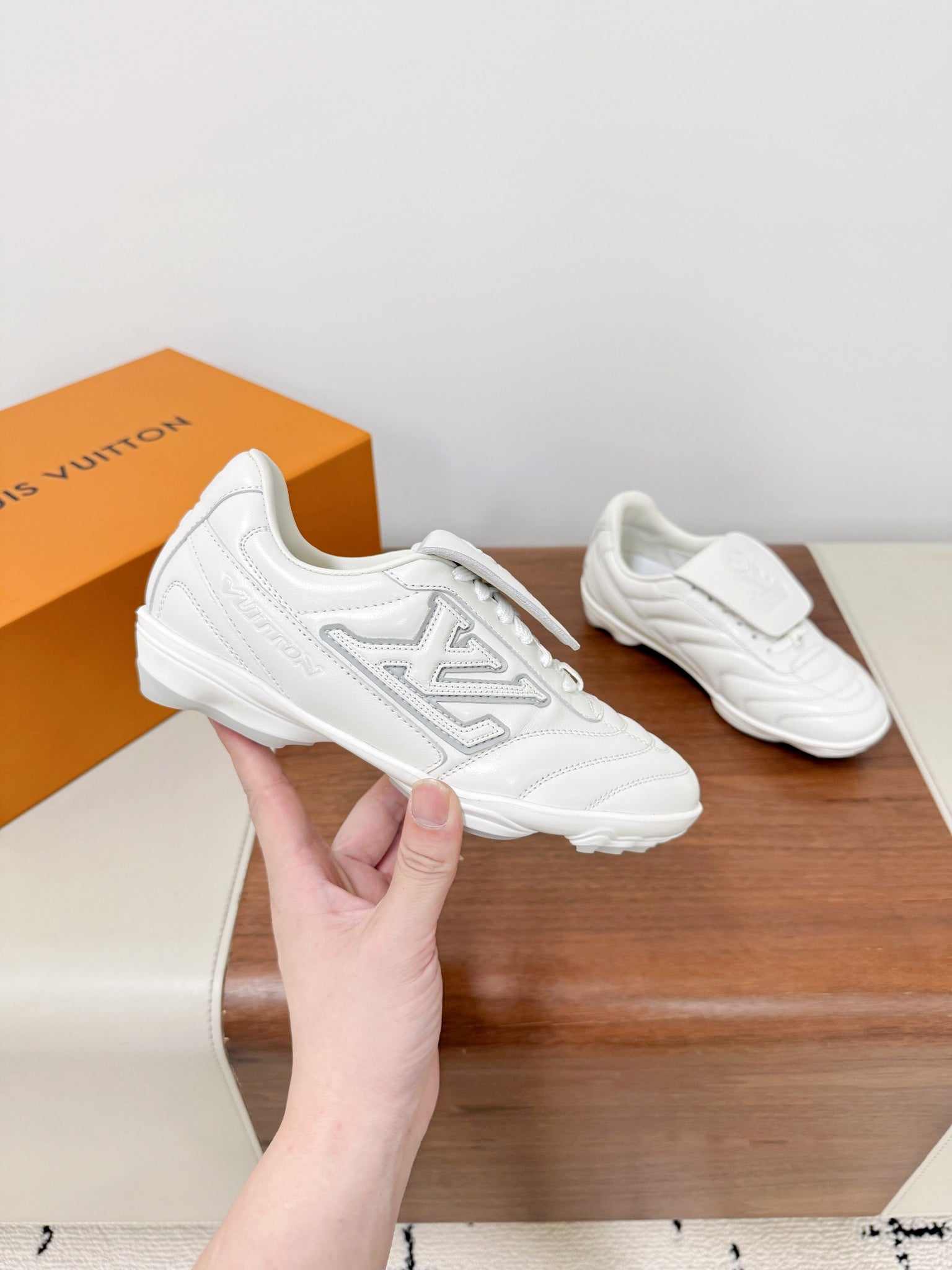LV Footprint Soccer Sneaker White Cowhide Leather 492886