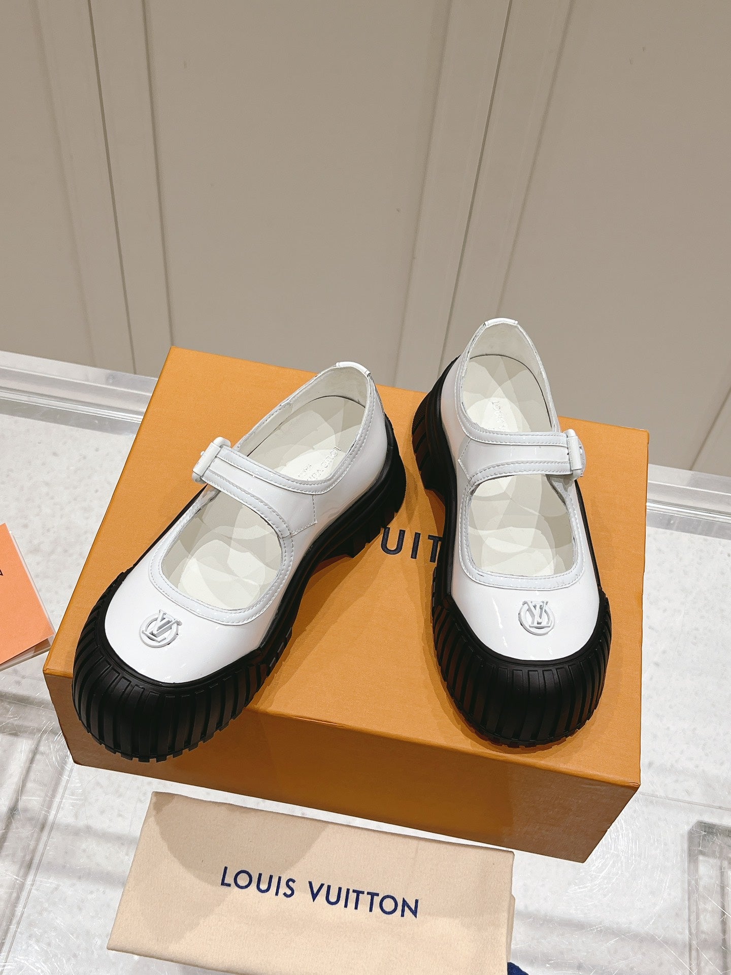 LV Ruby Flat Mary Jane Loafer Black White Patent Leather 480768