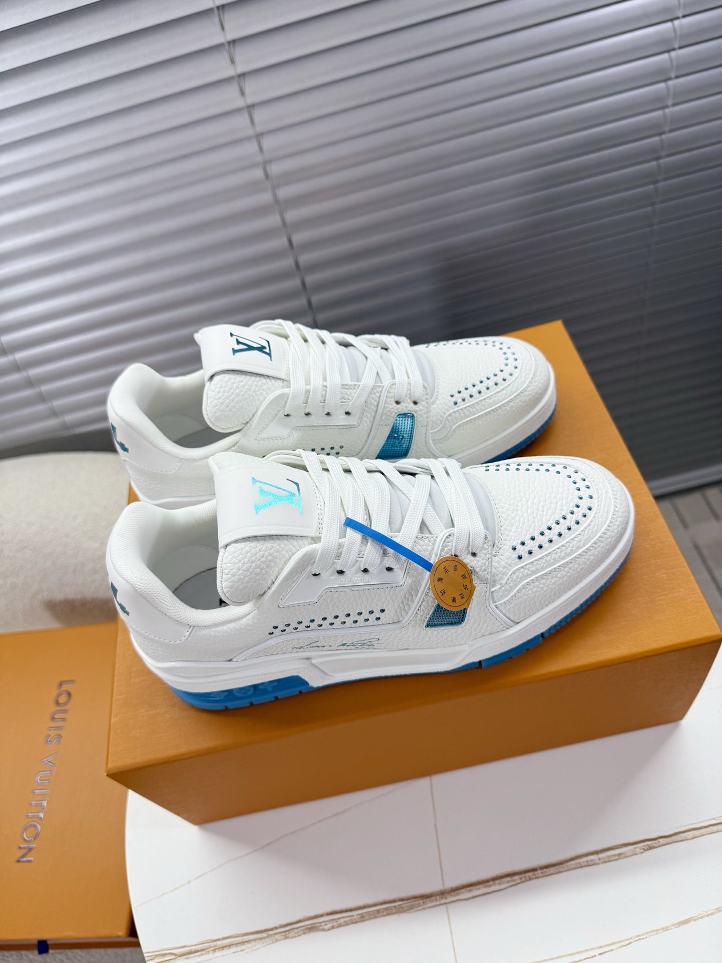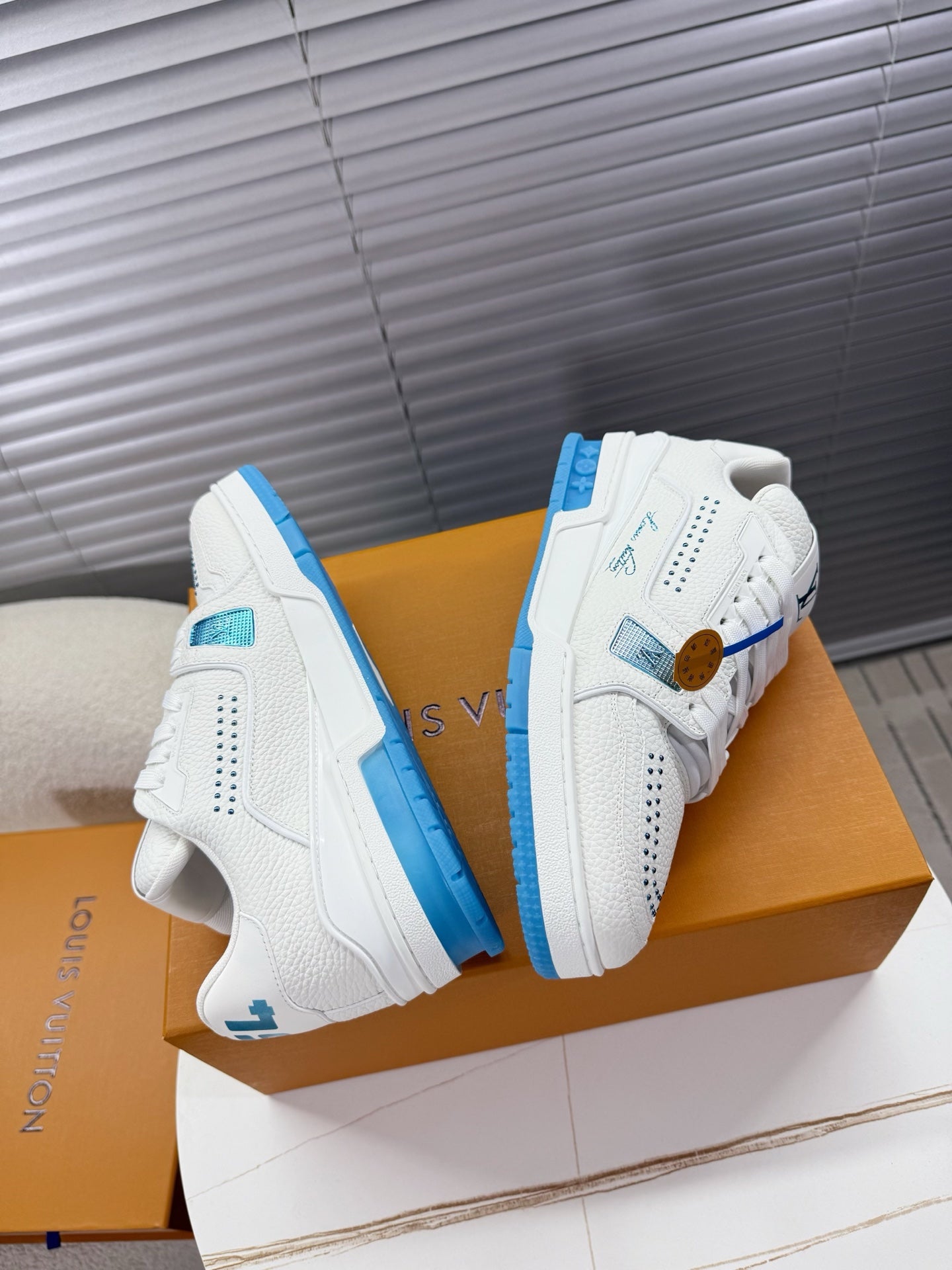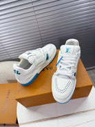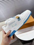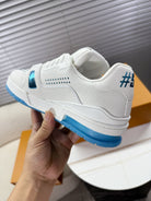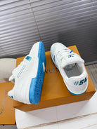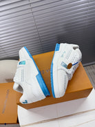 LV Trainer Sports Shoes White Blue Grained Calfskin 511757