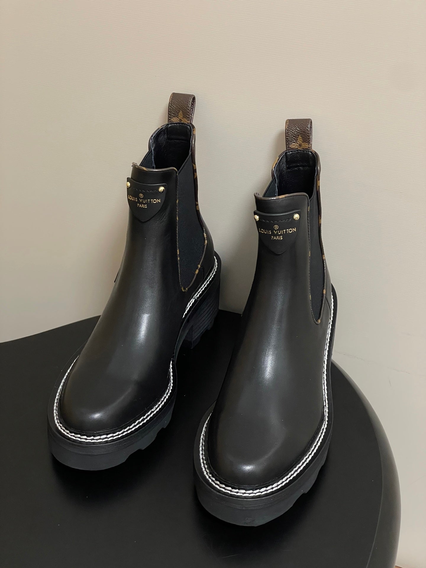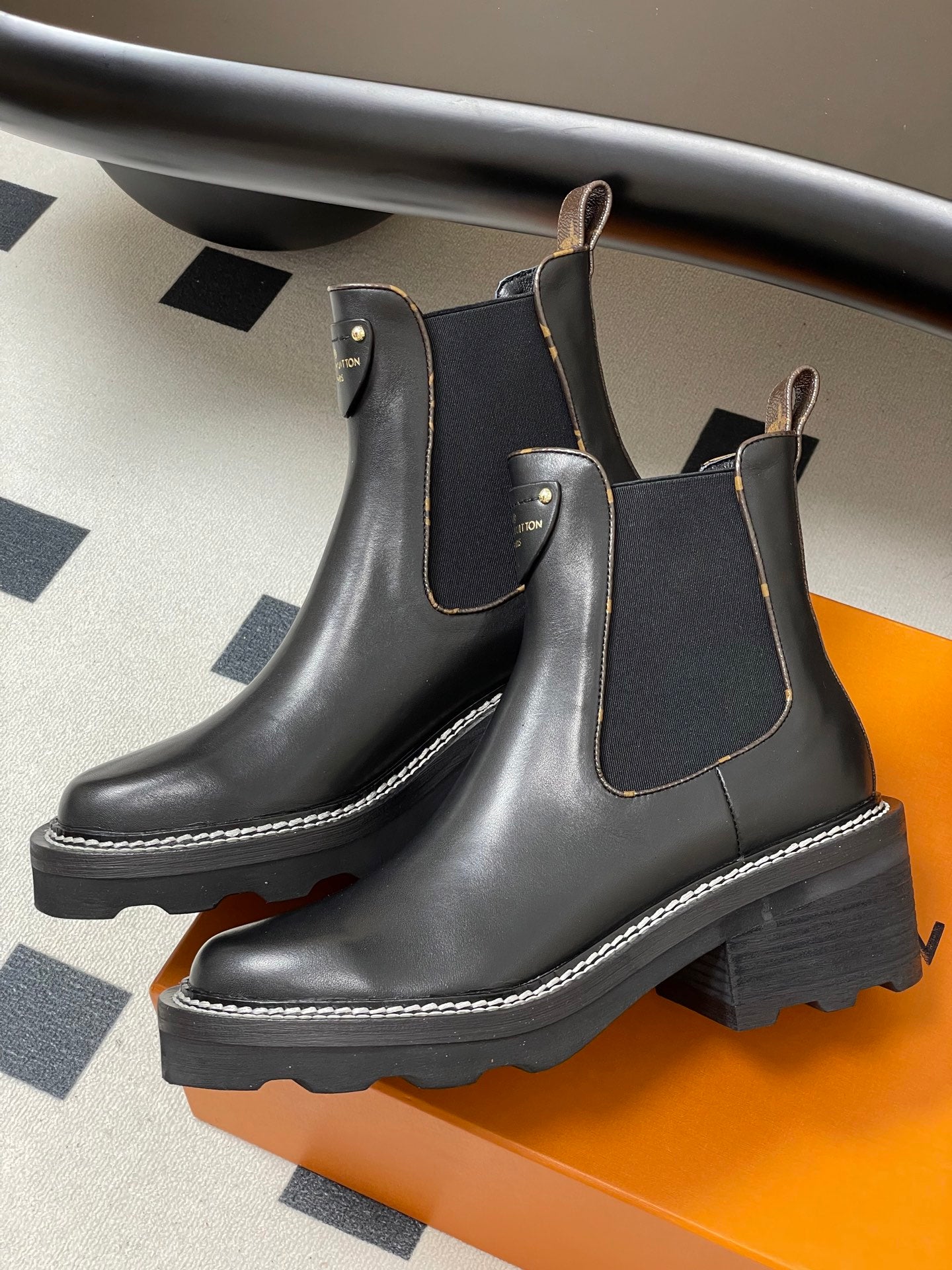 LV Triangle Logo Beaubourg Ankle Boots 40mm Black Cowhide & Rubber 423370