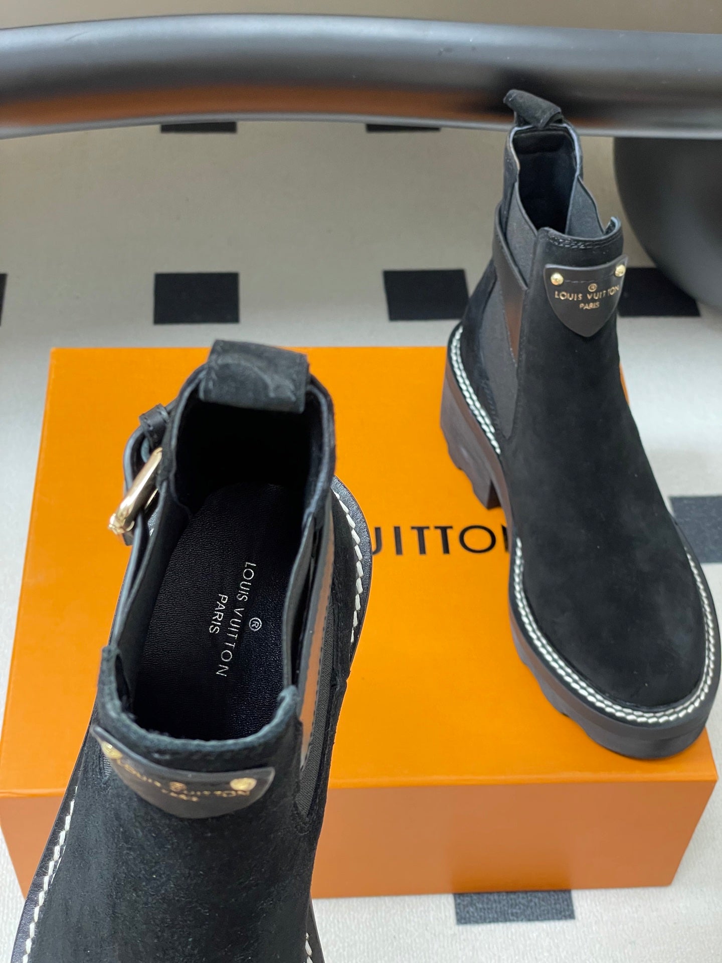 LV Triangle Logo Beaubourg Ankle Boots 40mm Black Suede & Rubber 423368