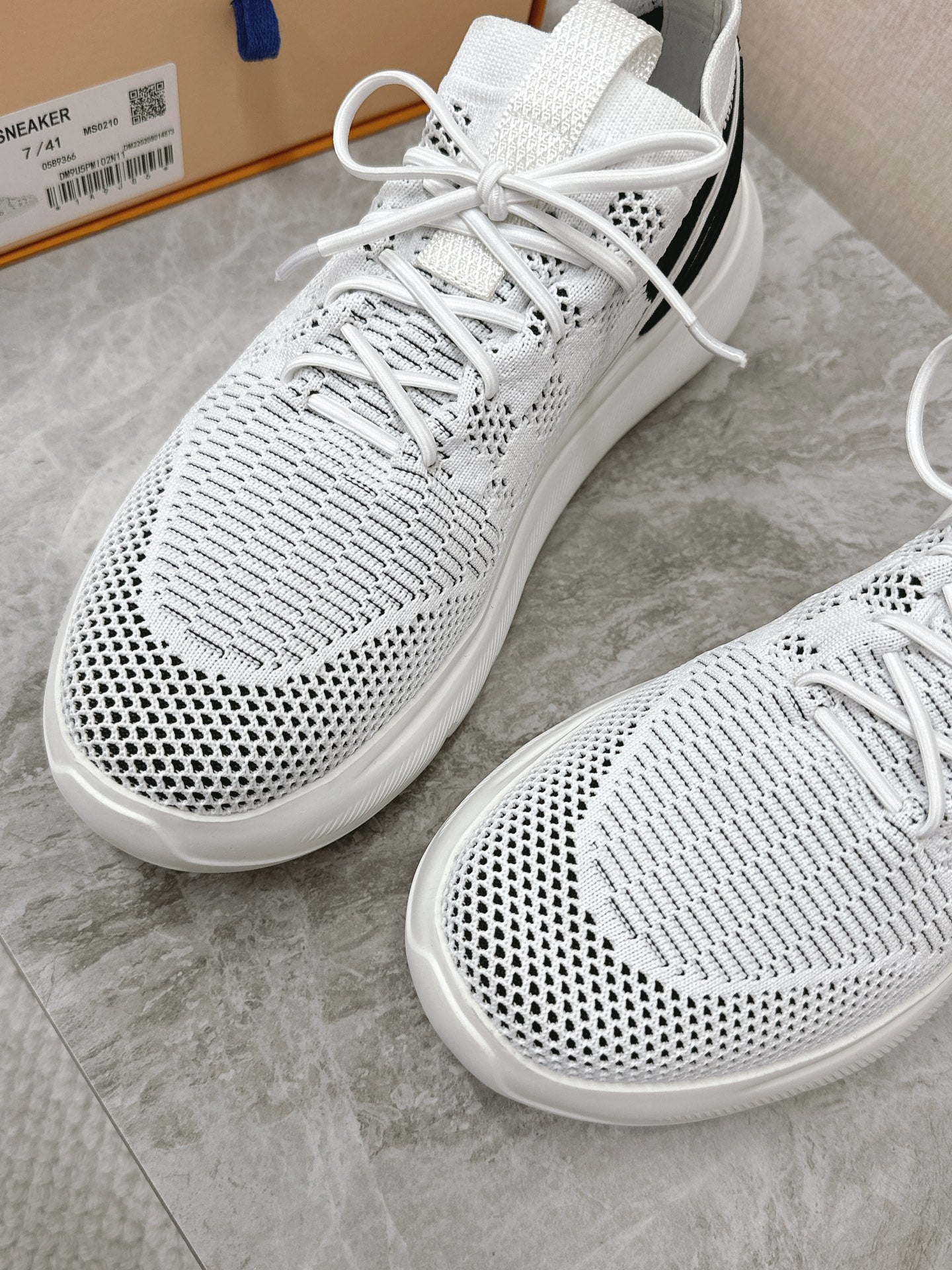 SNEAKERS IN WHITE DAMIER ELASTIC FABRIC