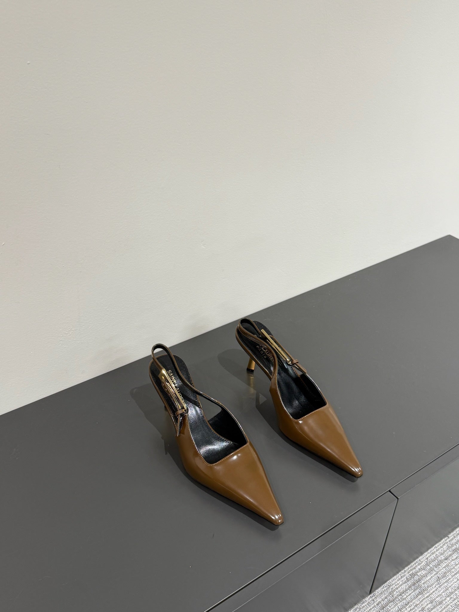 LEE SLINGBACK PUMPS 75 MM IN COFFEE BROWN PATENT CALFSKIN