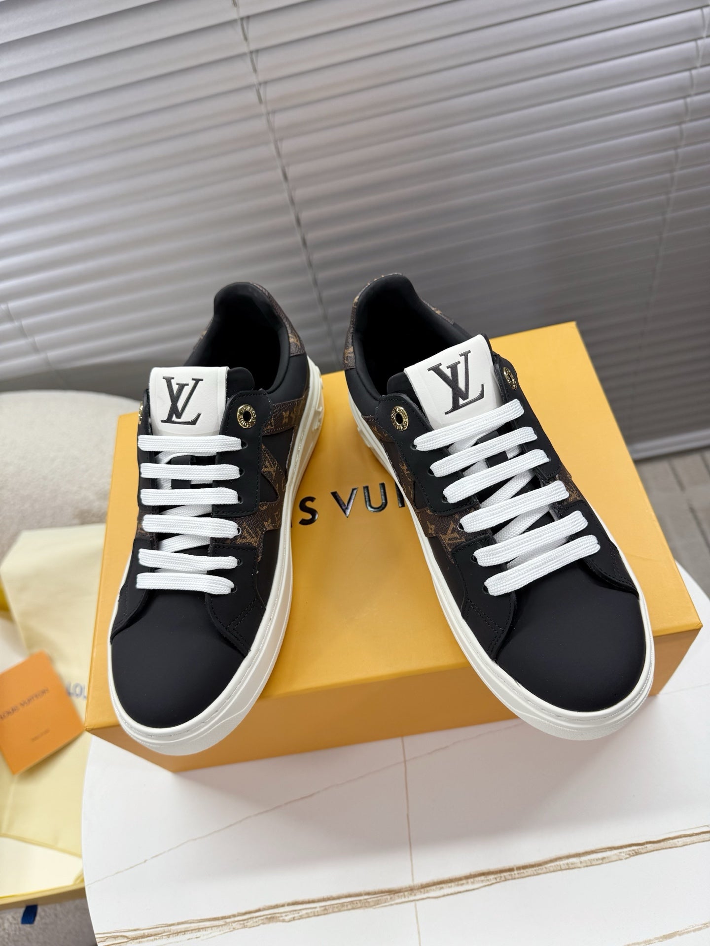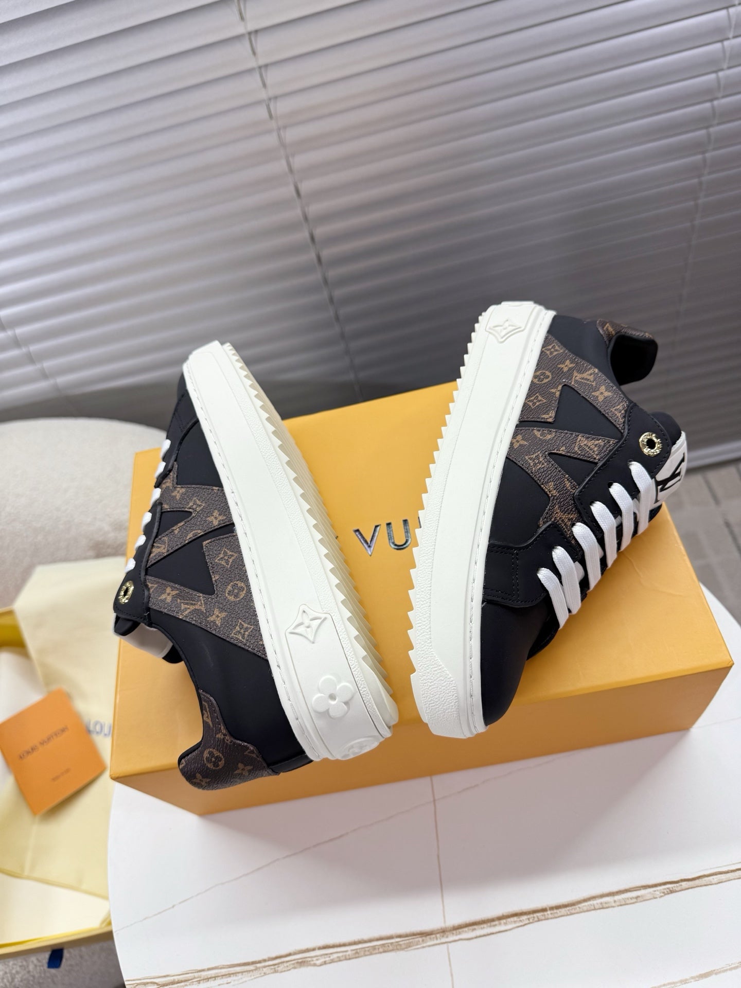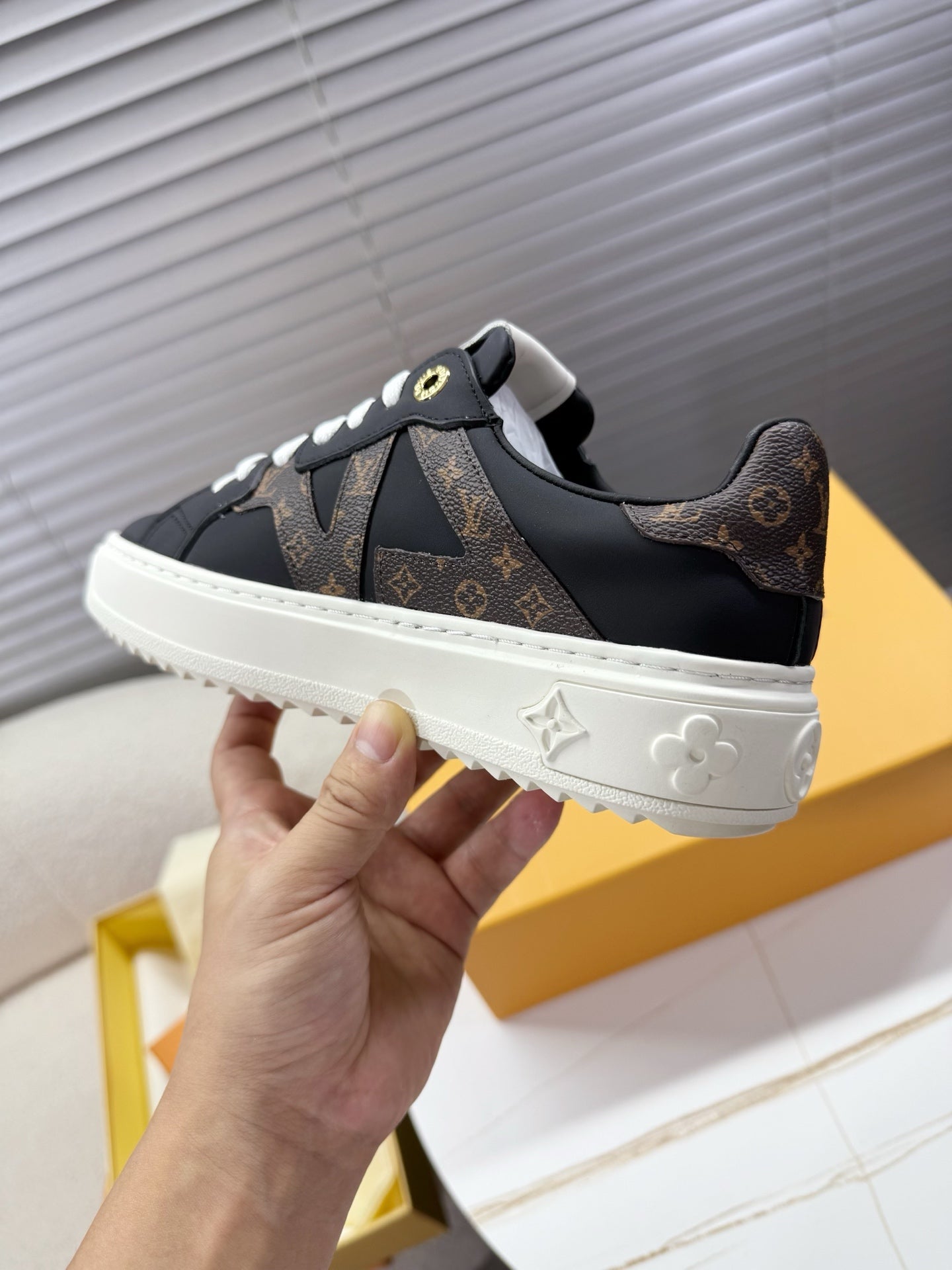 LV 1AIEGO Time Out Sneaker Black Cowhide Brown Monogram Canvas 511749