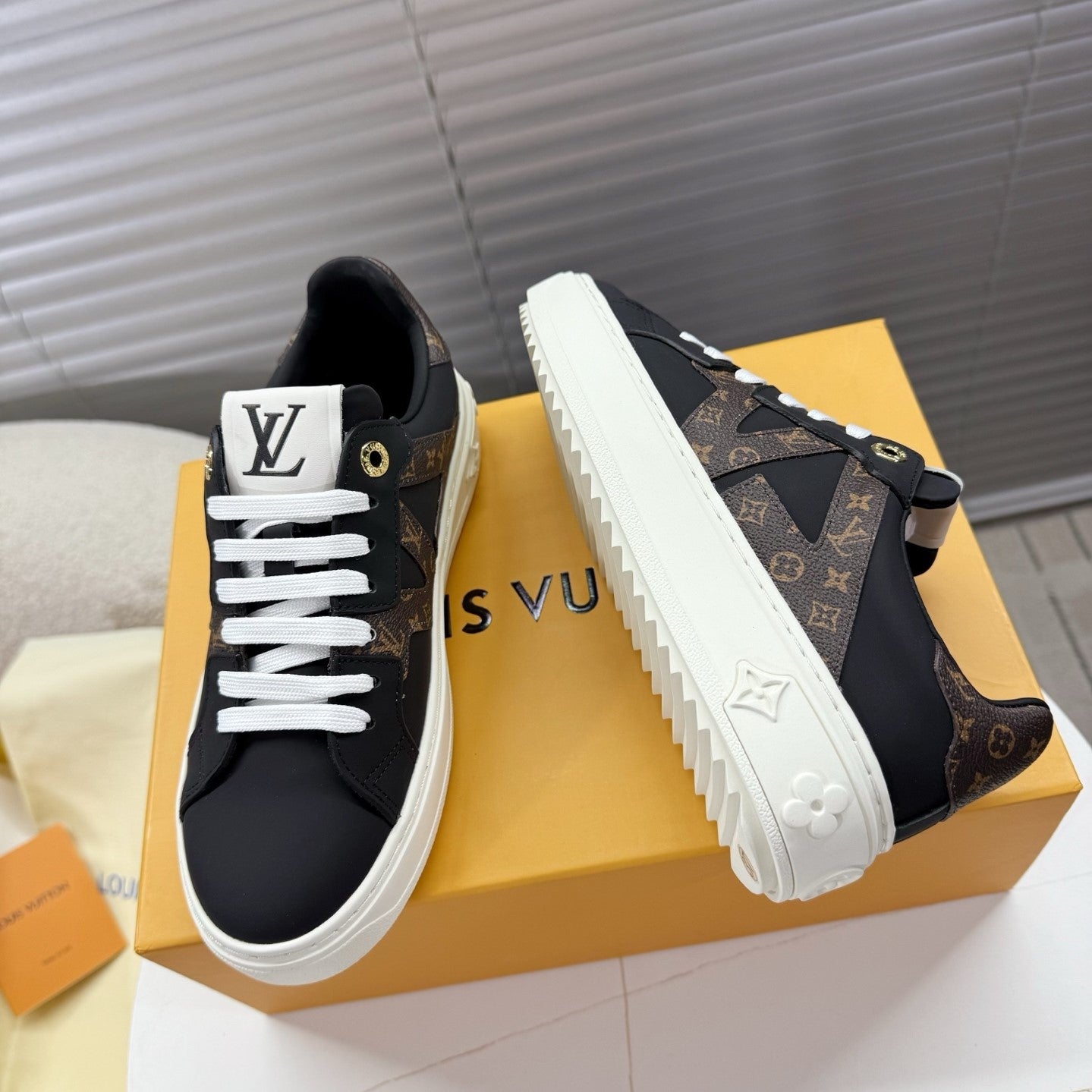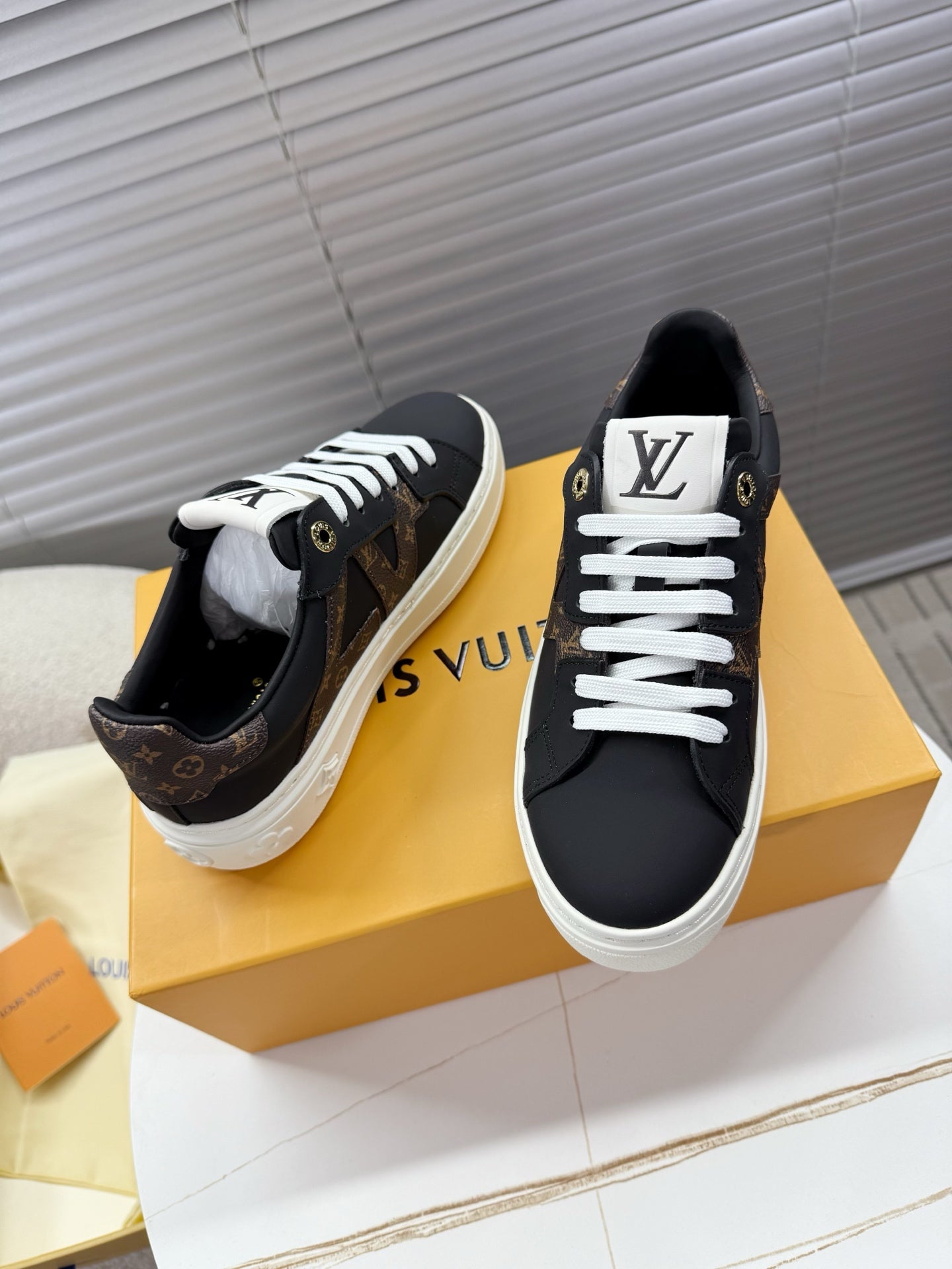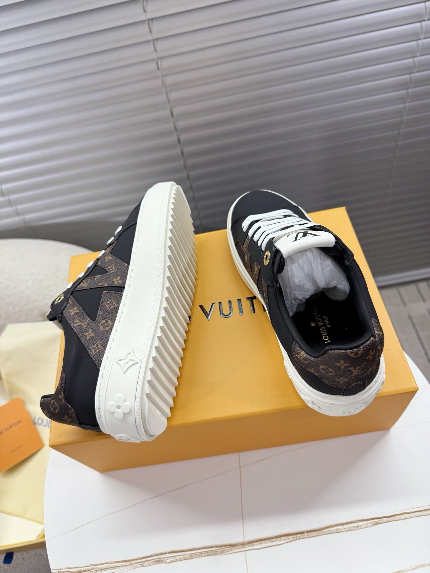 LV 1AIEGO Time Out Sneaker Black Cowhide Brown Monogram Canvas 511749
