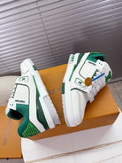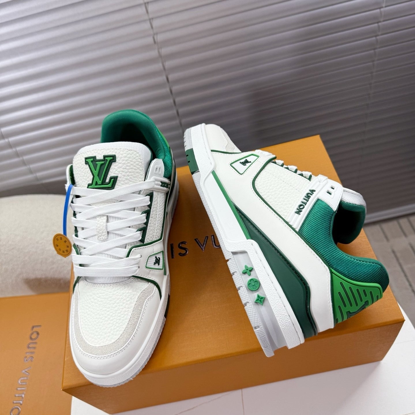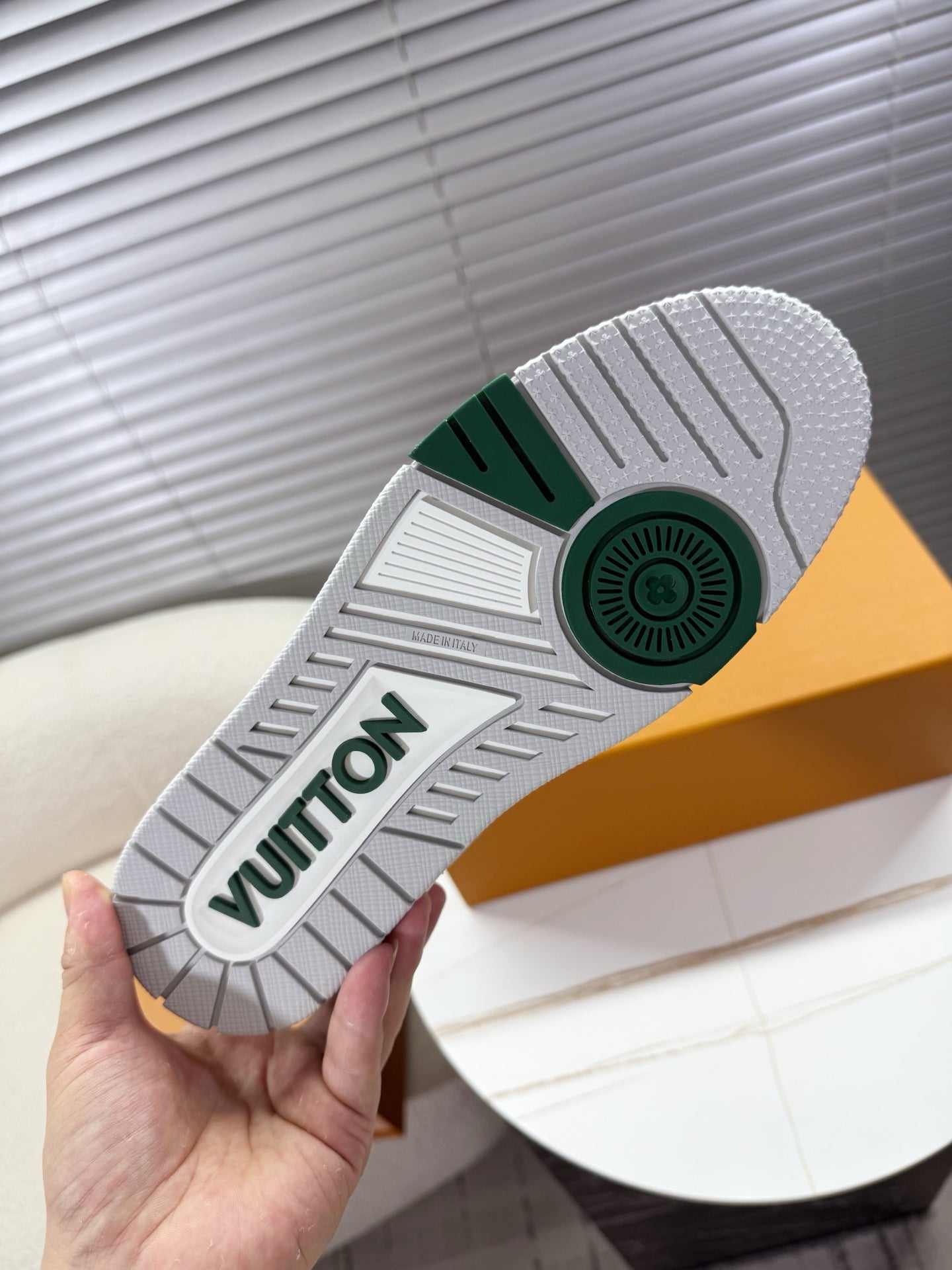 LV 1AIJ41 Trainer Sports Shoes White Green Grained Calfskin 511752