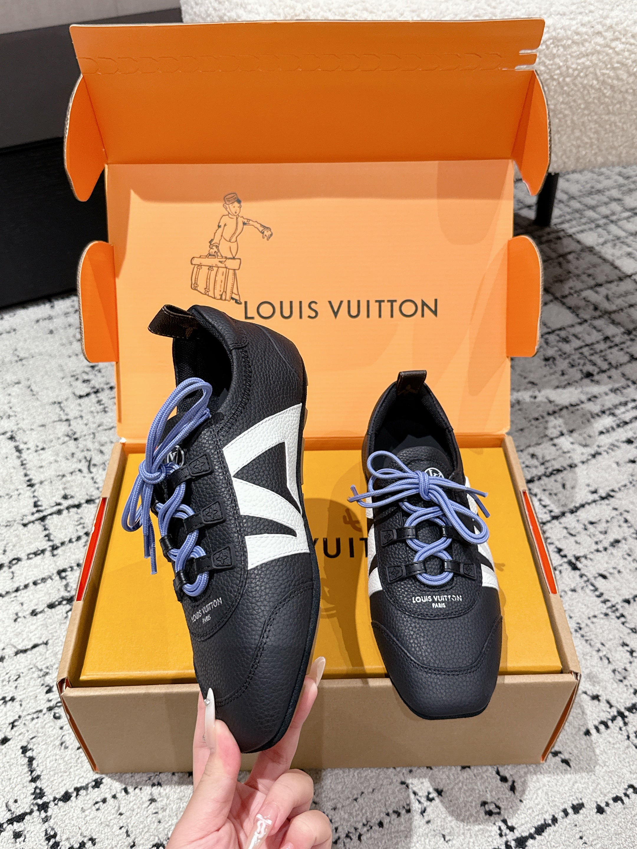 LV Sneakerina ballet-style sneaker black white cowhide 383386