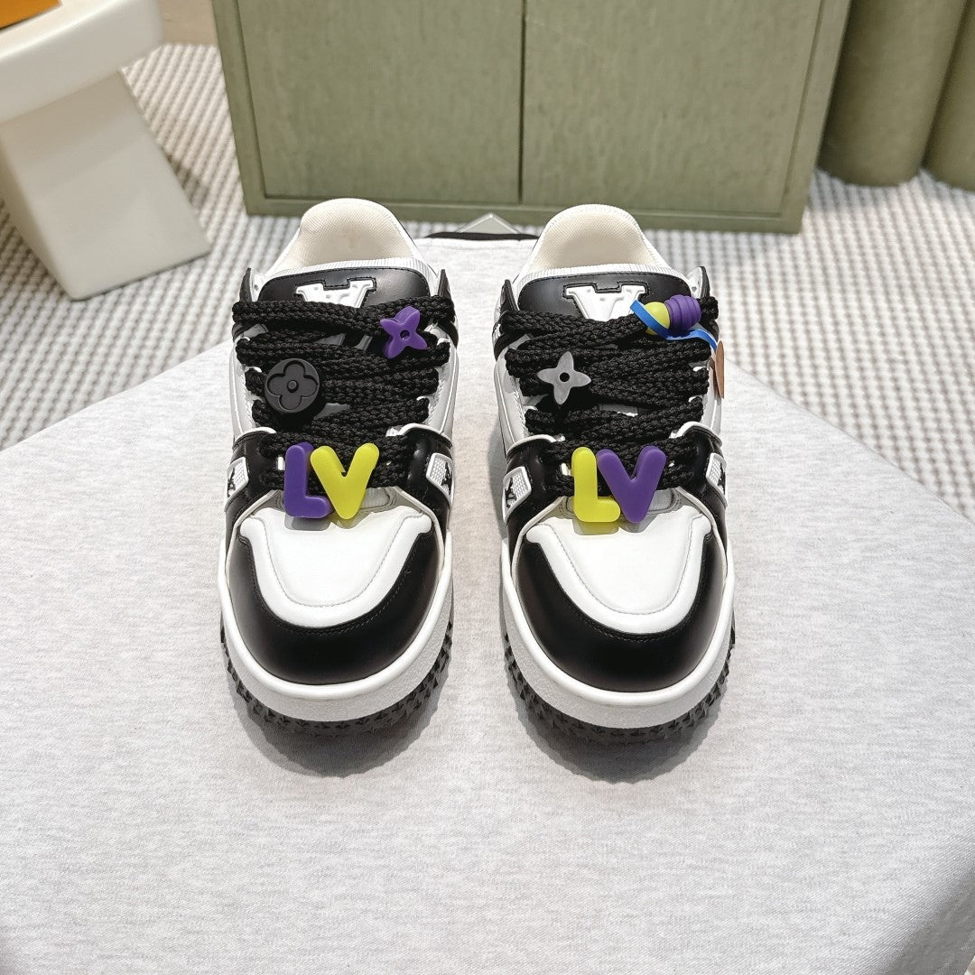 LV Trainer Maxi Sneakers Black Mix White Calfskin Mesh 515195