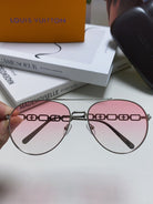 CHAIN PILOT SUNGLASS 581380 IN SILVER METAL PINK SMOKE LENSES