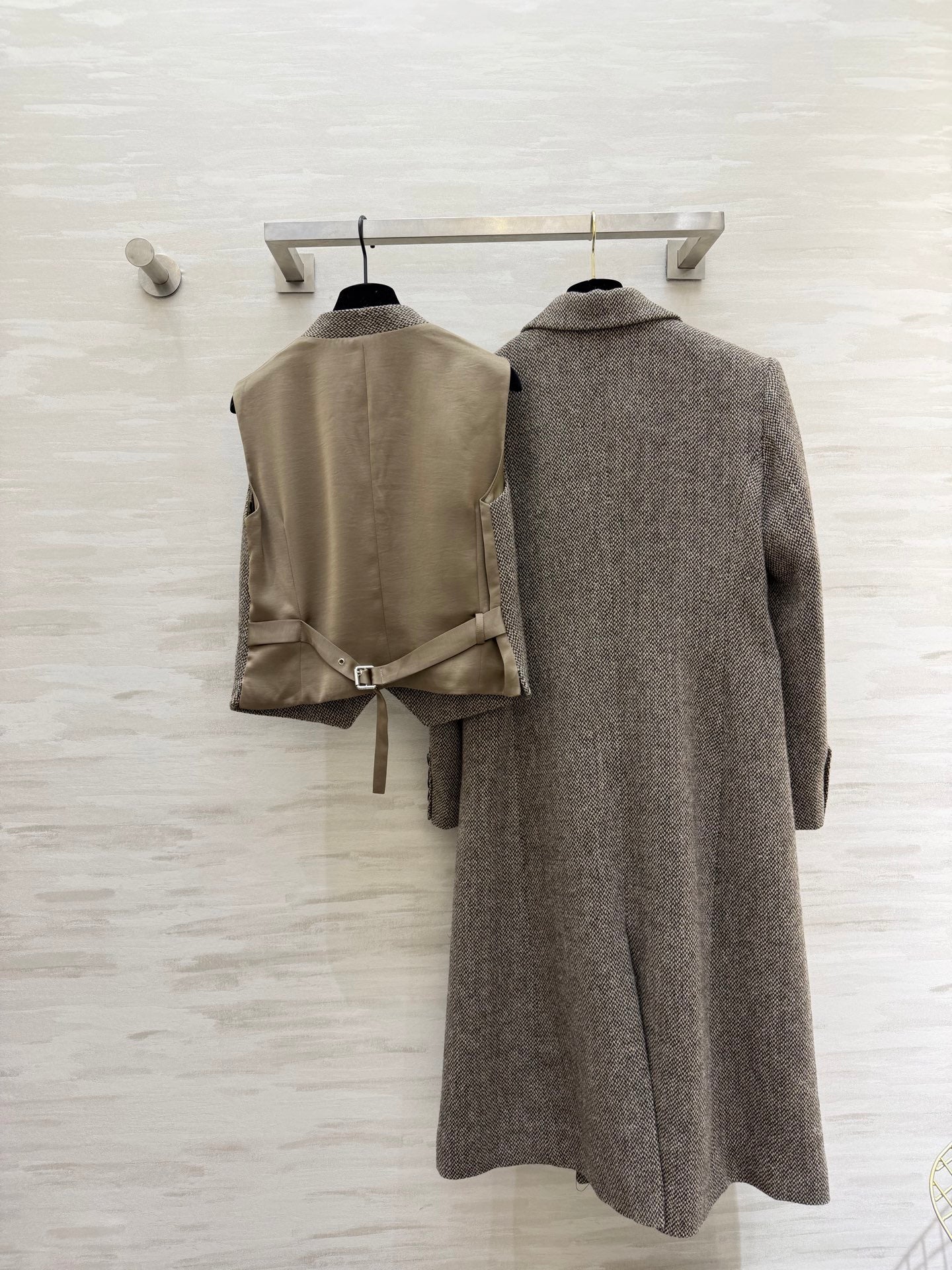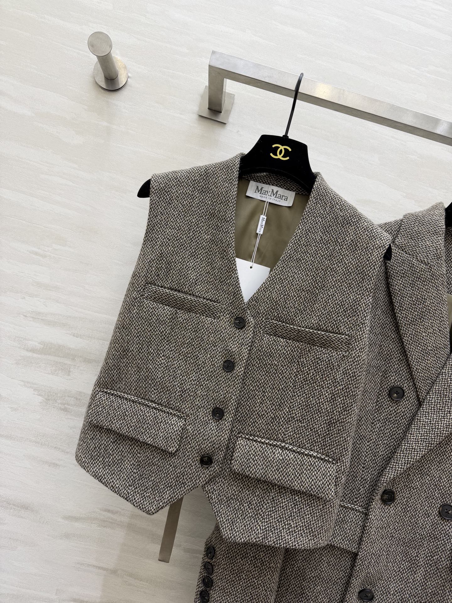 Max Mara 26s Set Coat & Vest White Black Wool 344822