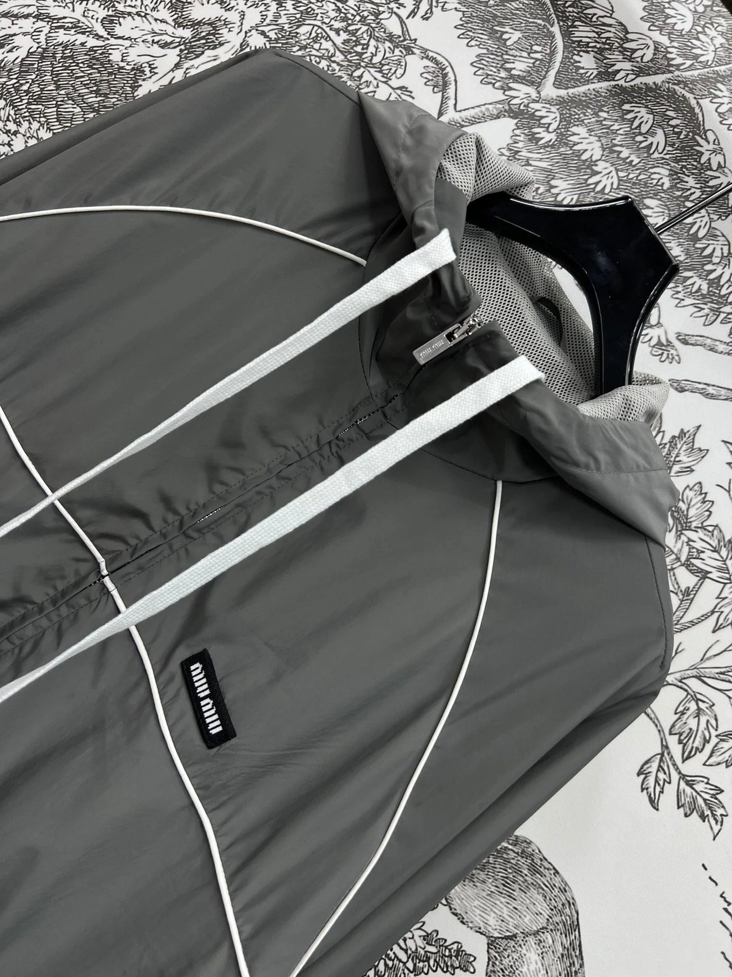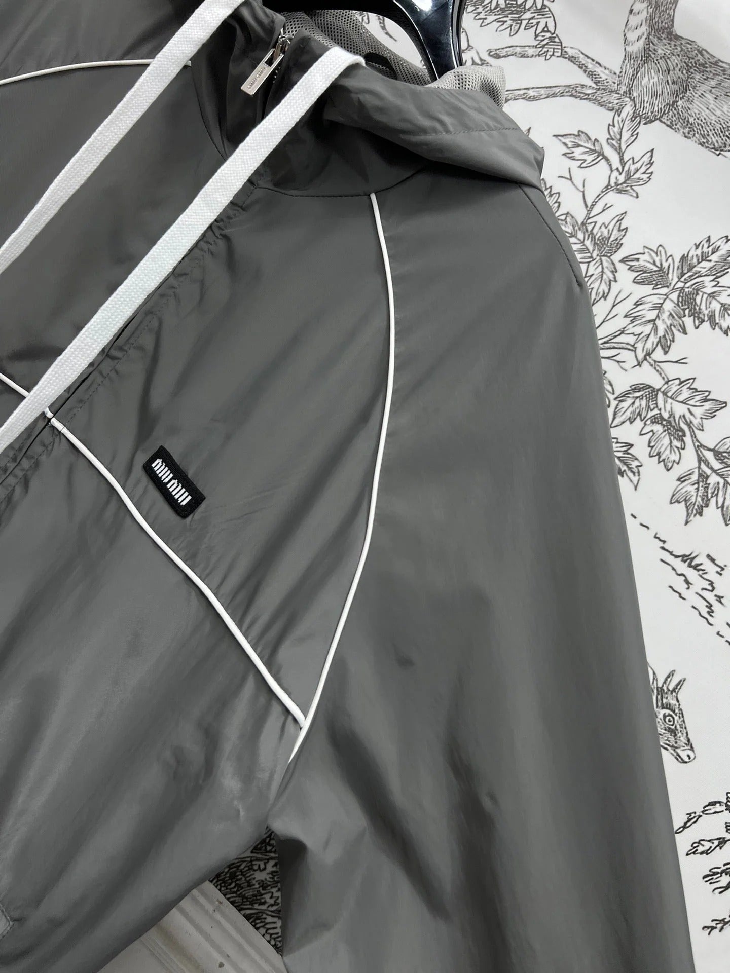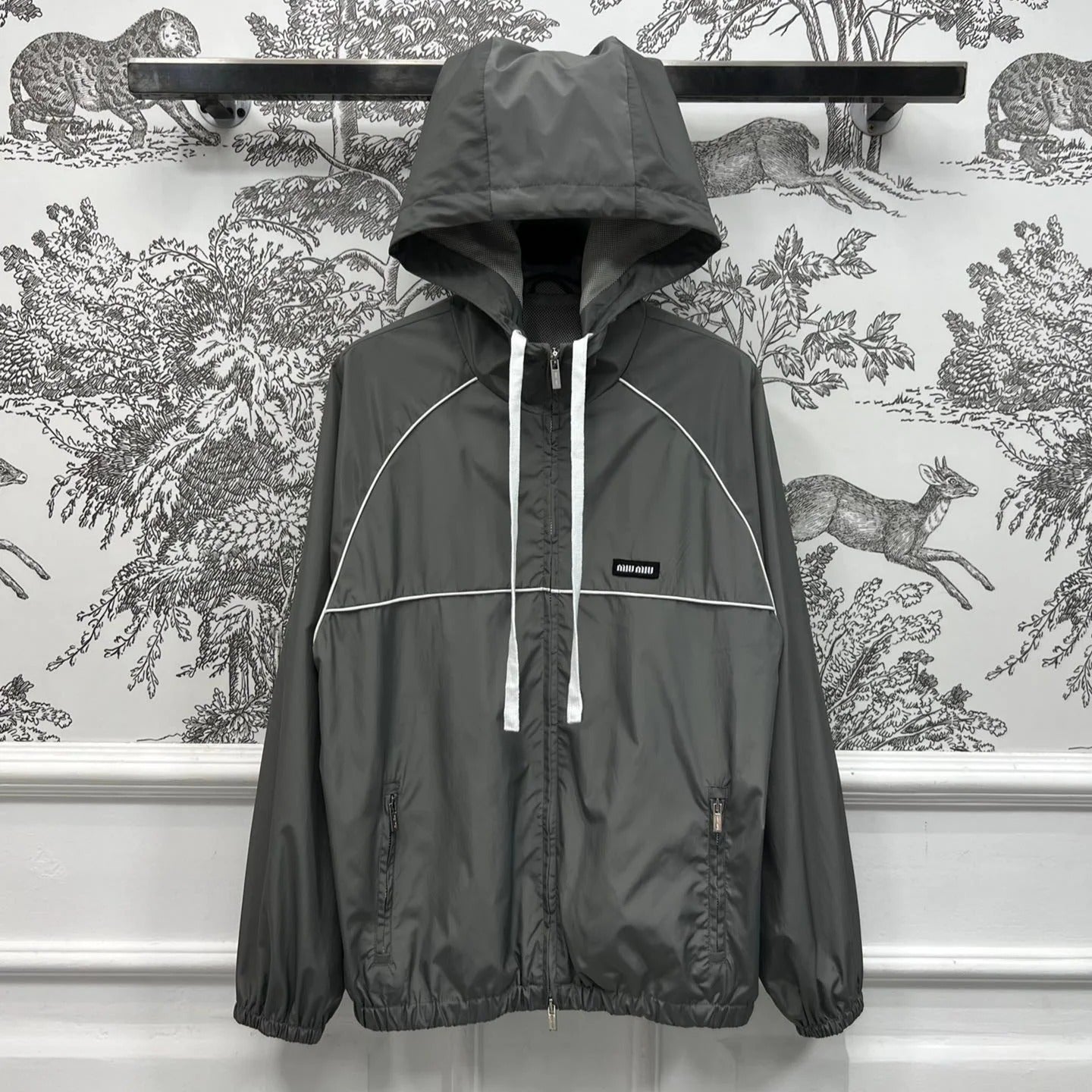 MIU 25S HOODED JACKET GREY IN NYLON 263131