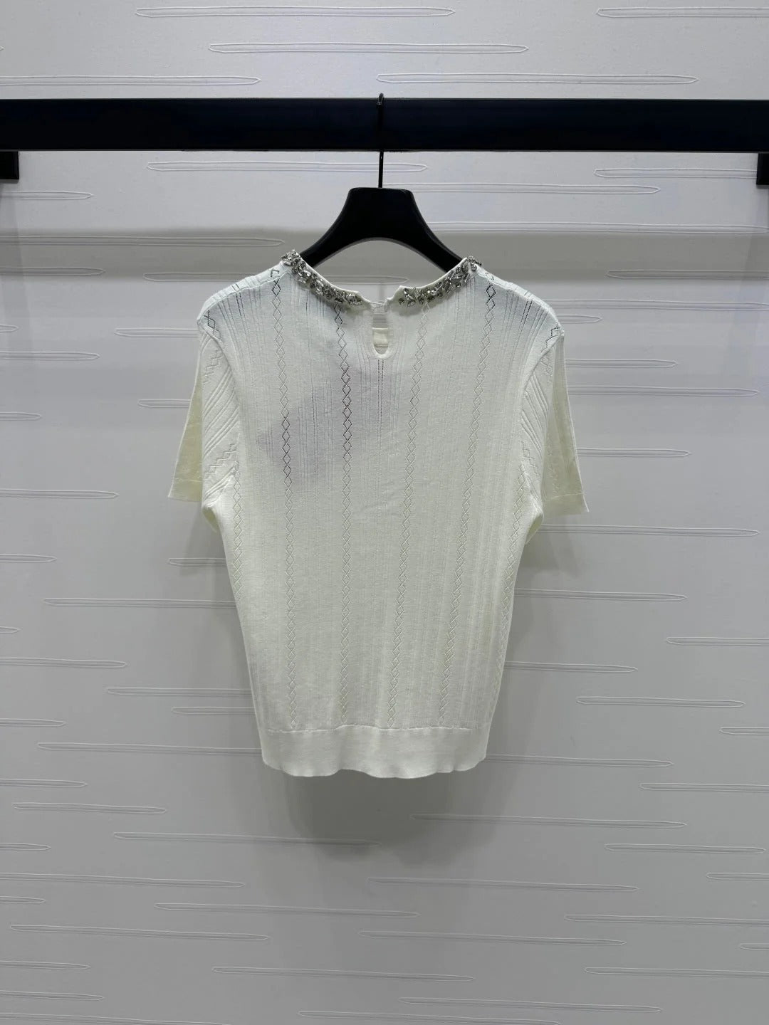 MIU 25S RHINESTONE COLLAR T-SHIRT 264095