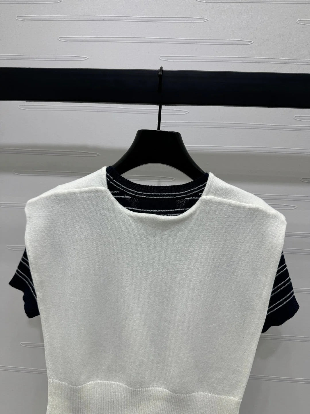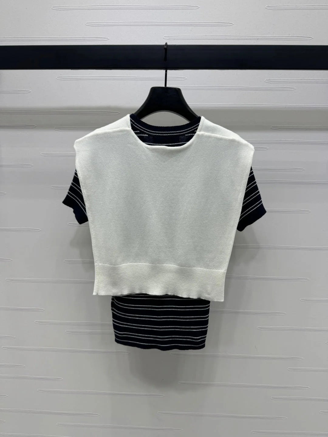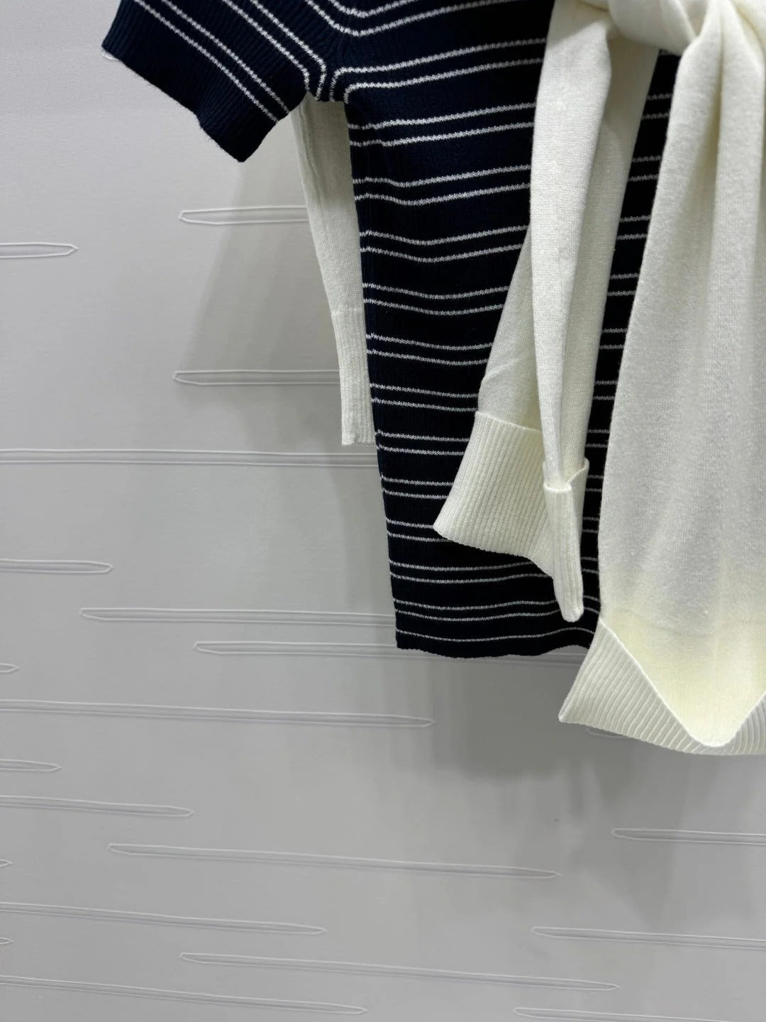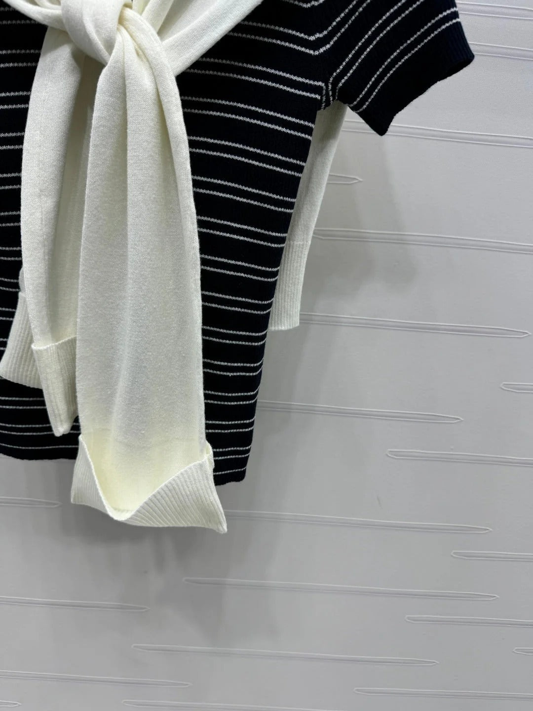 MIU 25S SHORT SLEEVE STRIPED KNITTED CAPE 264138