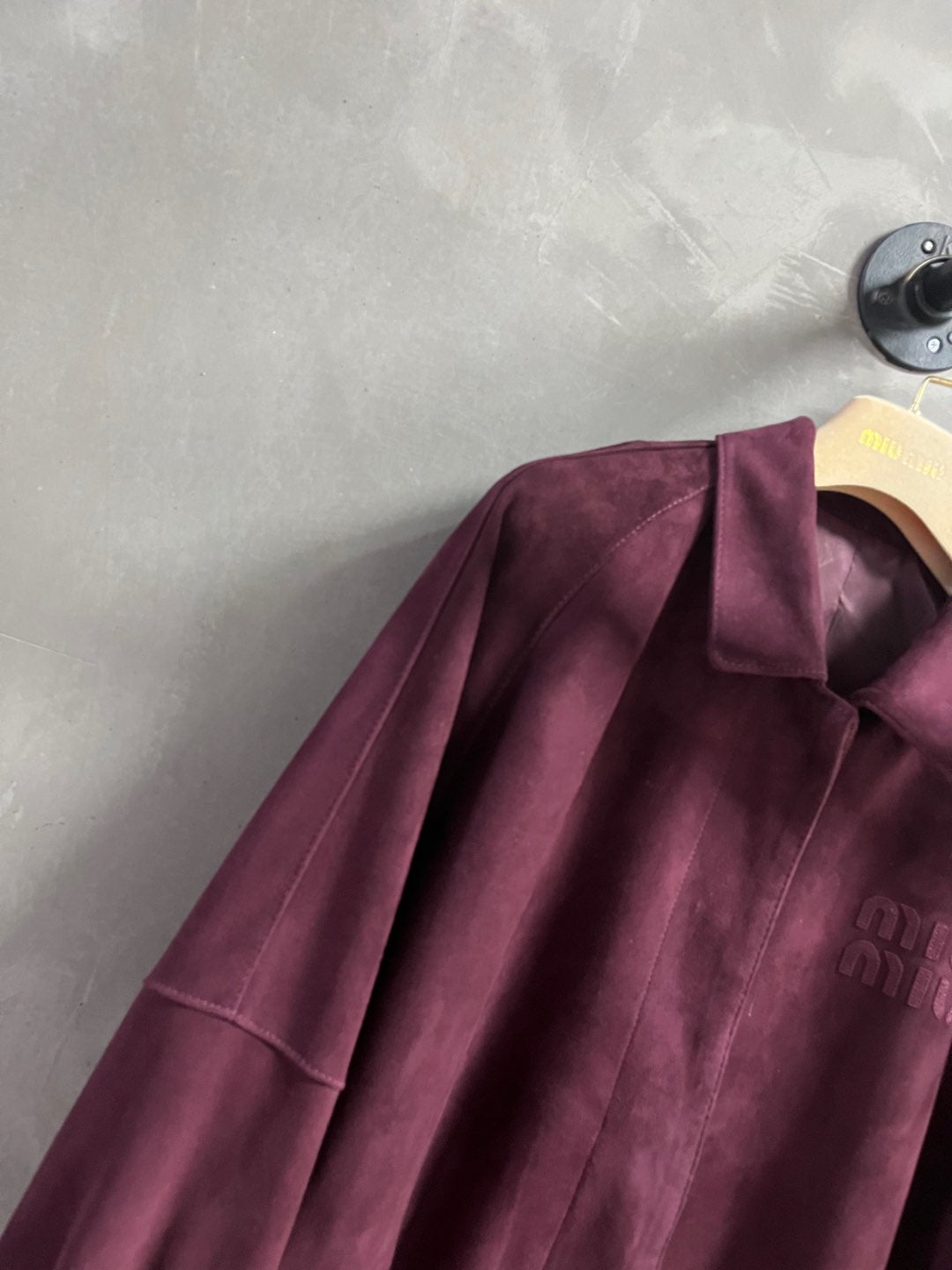Miu Miu 2025 Jacket Burgundy Sheepskin Suede