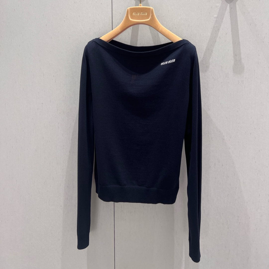 Miu Miu 25 Long-sleeved Top Navy Blue Cashmere