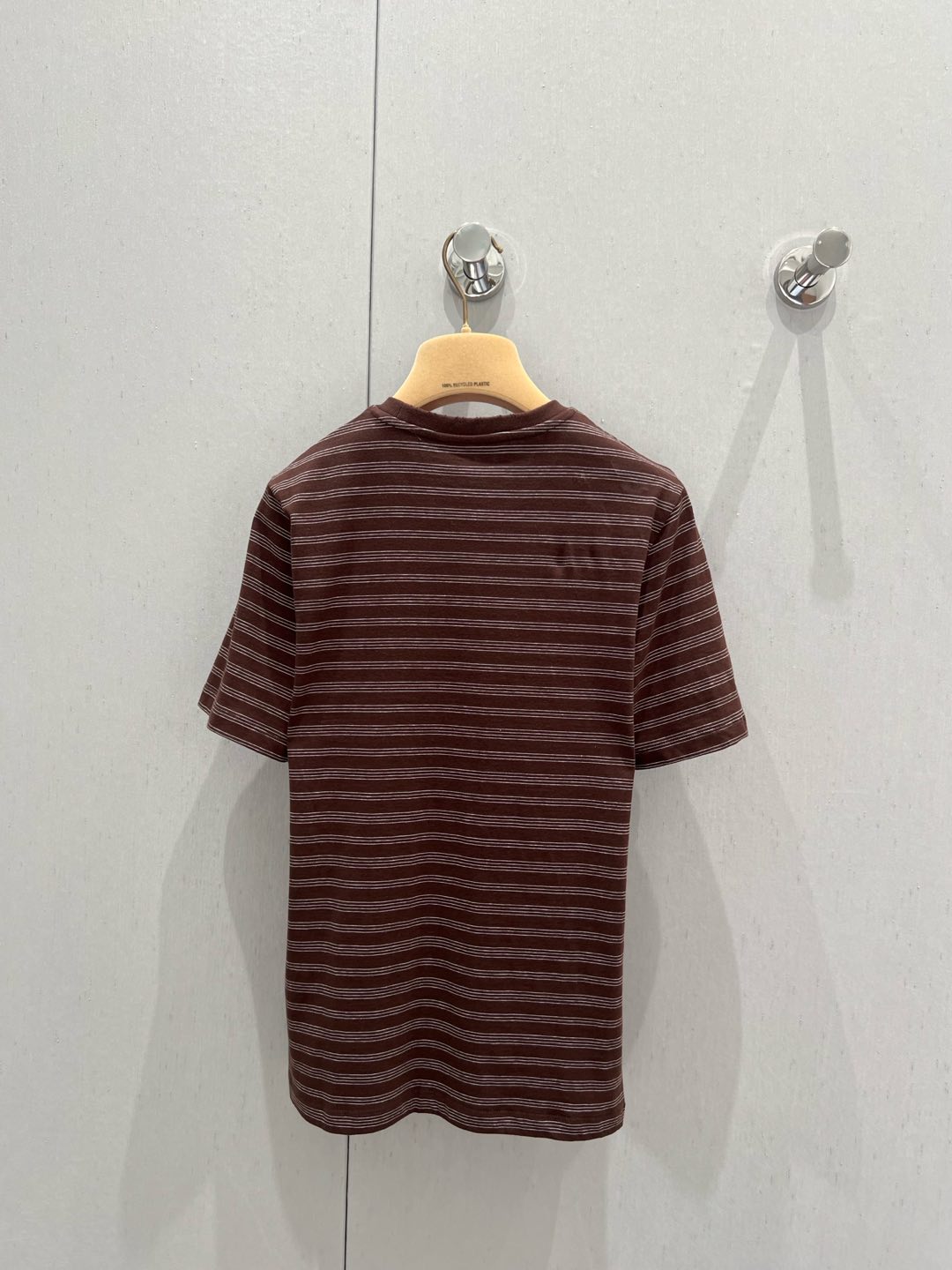 Miu Miu 25 Striped Round Neck Short-sleeved T-shirt Brown Cotton