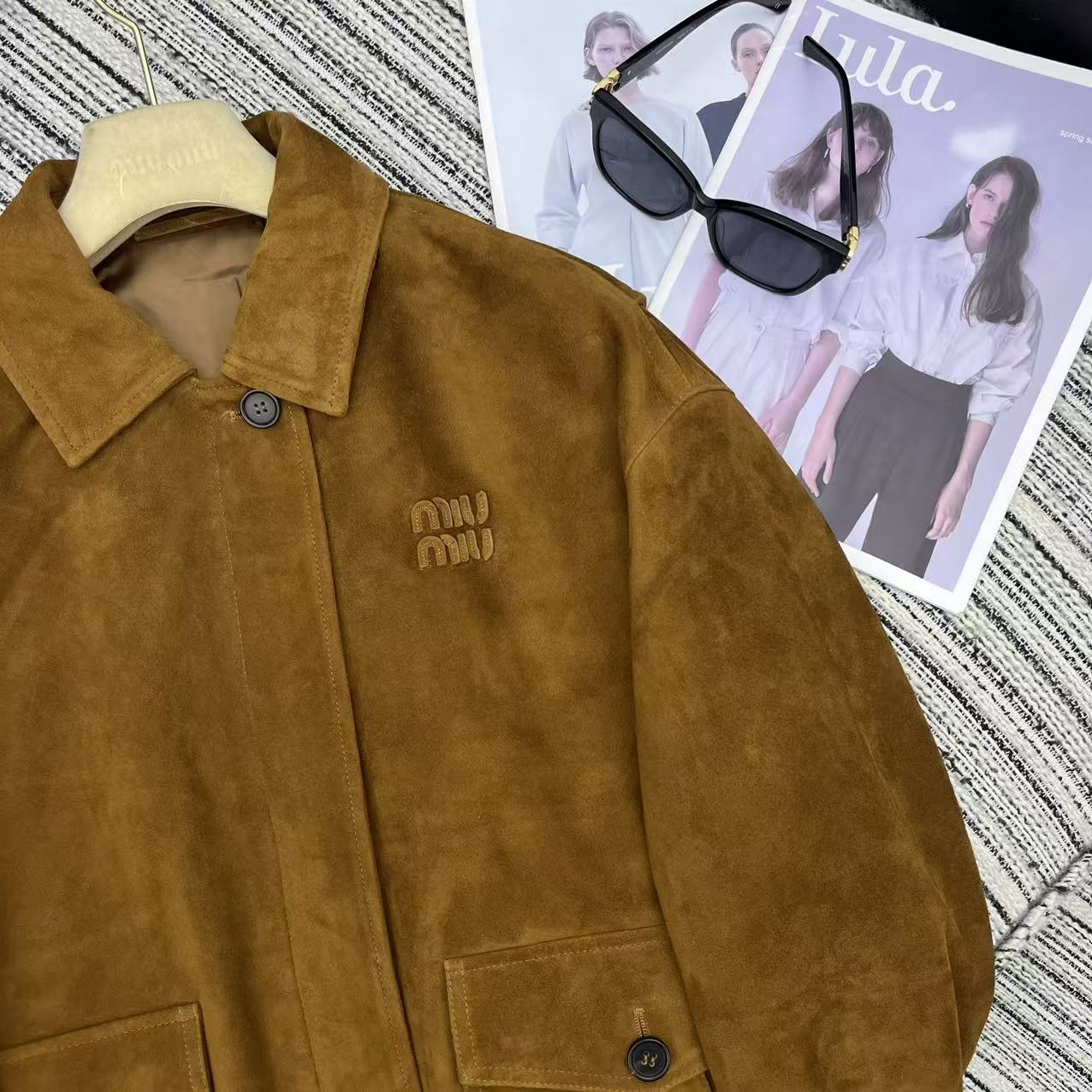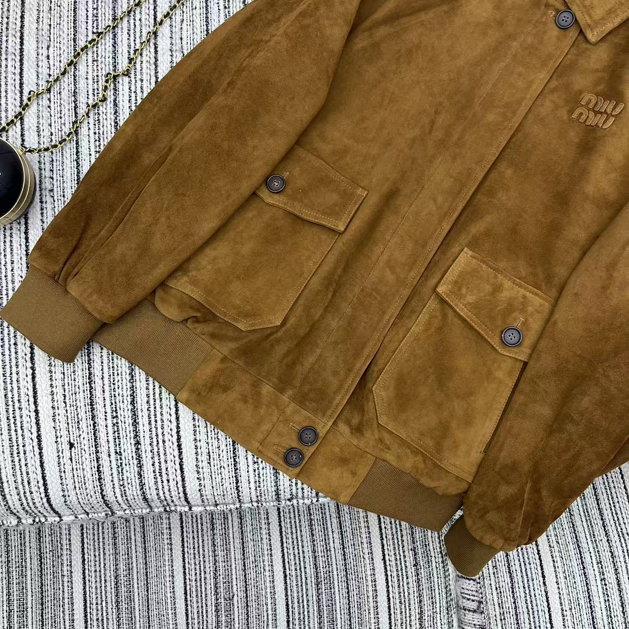 Miu Miu 25 Suede Jacket Brown Yellow 302349