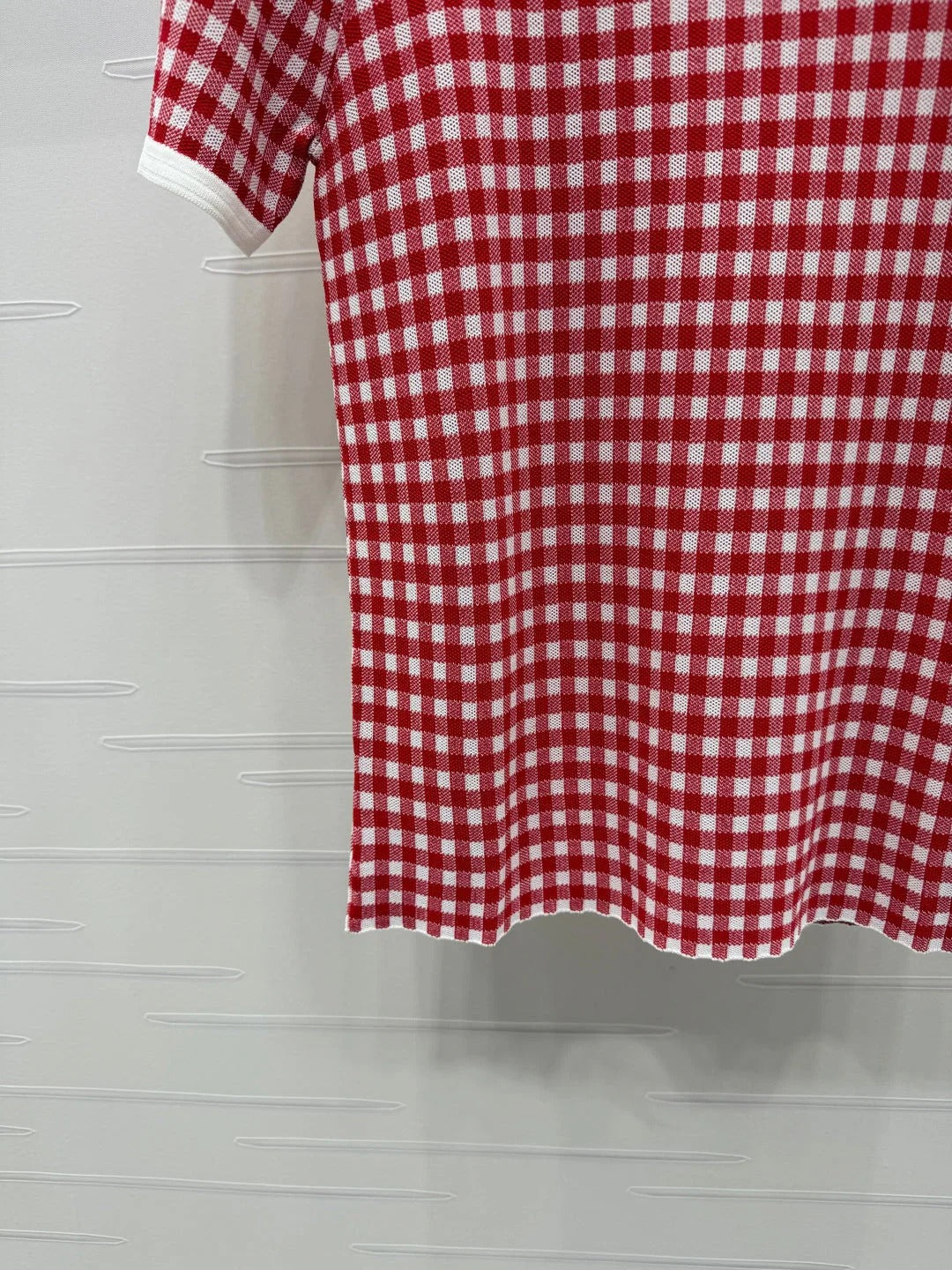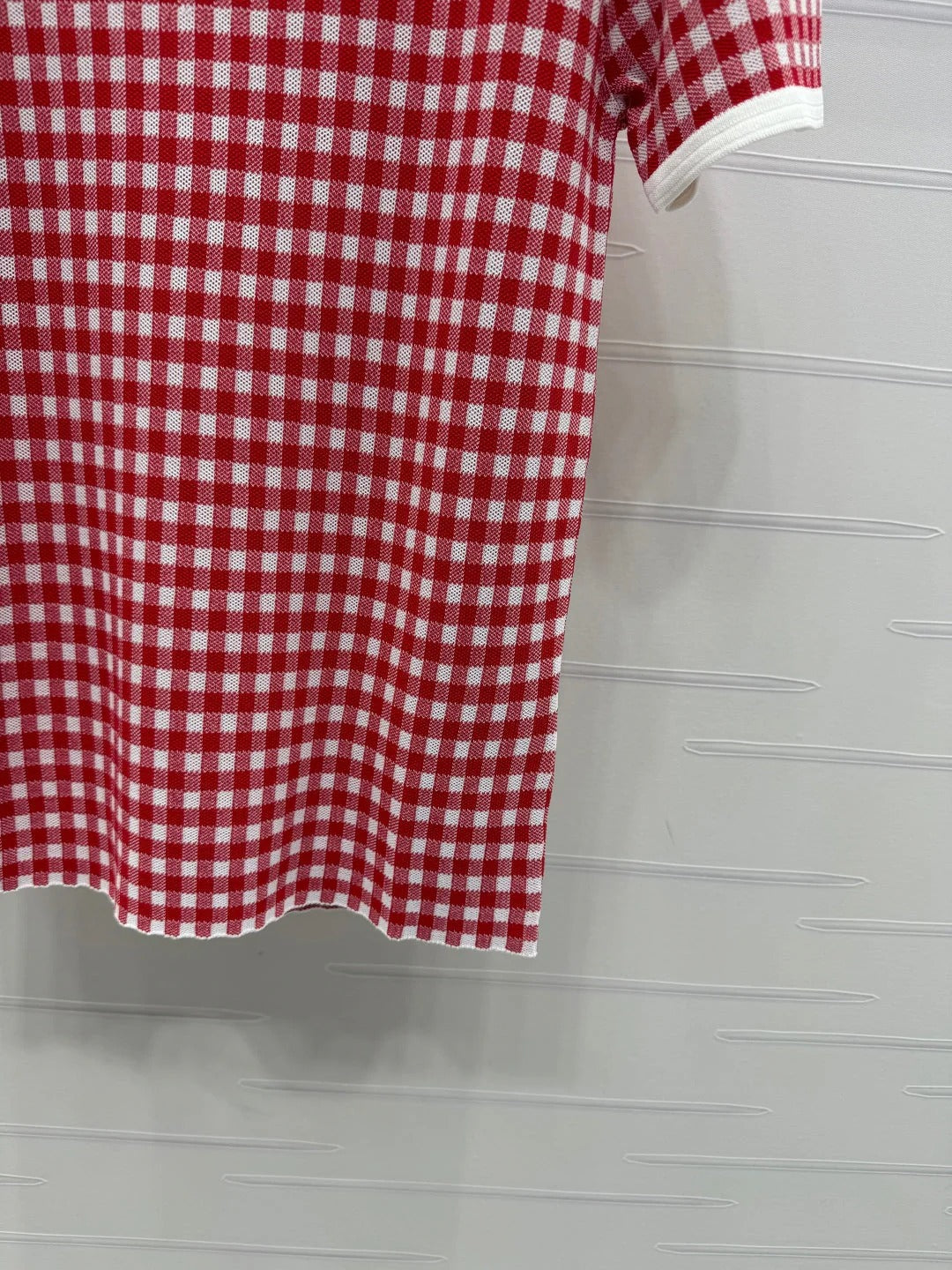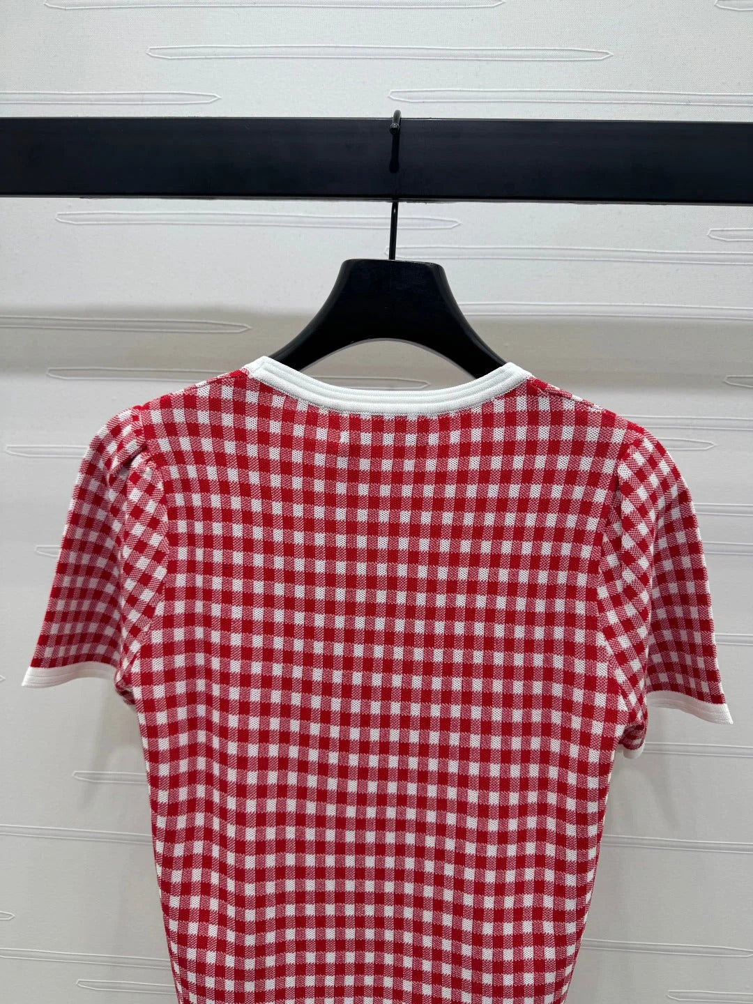 MIUMIU CREW NECK SHORT-SLEEVE PLAID KNIT TOP 274834