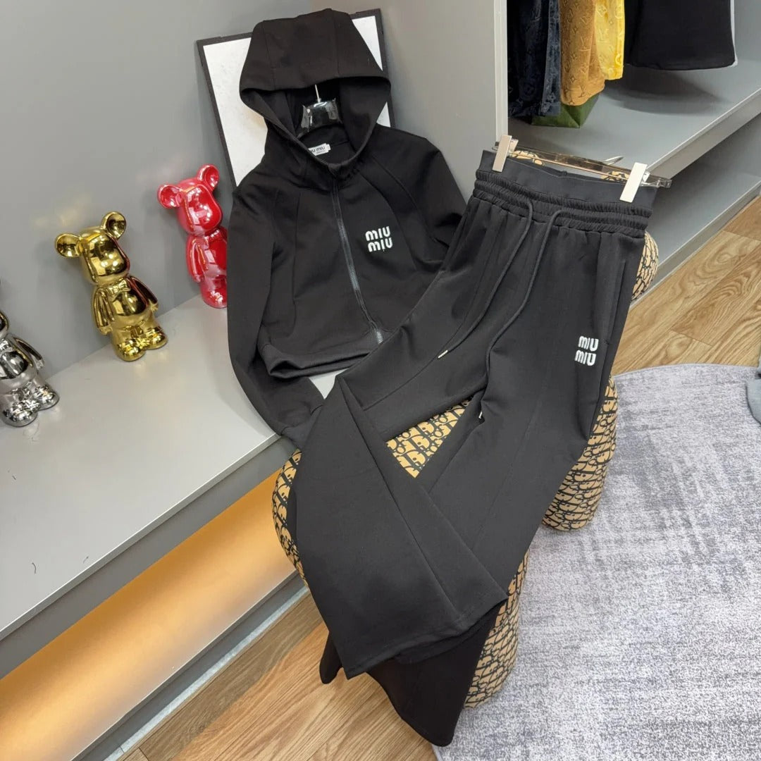 MIUMIU FLEECE TOP AND FLARED PANTS SET STYLE 217
