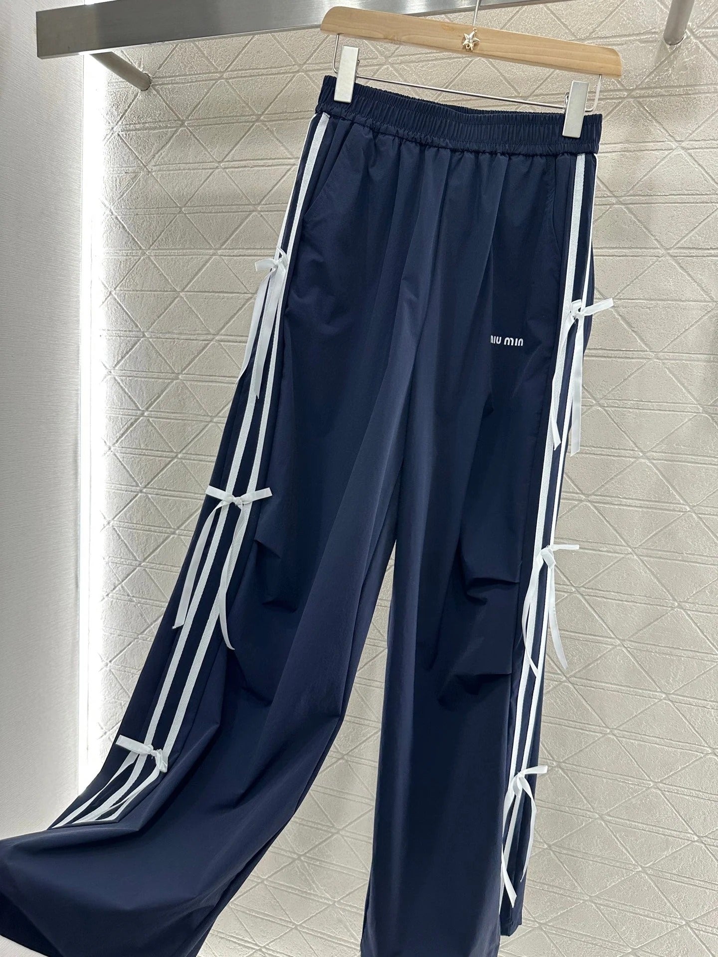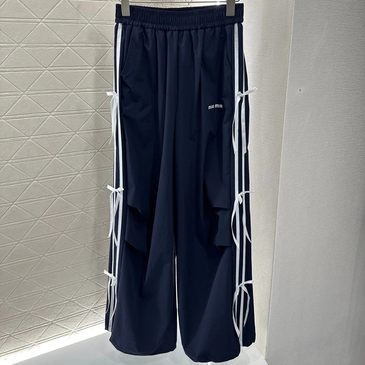 MIUMIU HIGH-WAISTED WIDE-LEG PANTS WITH BOW 276652