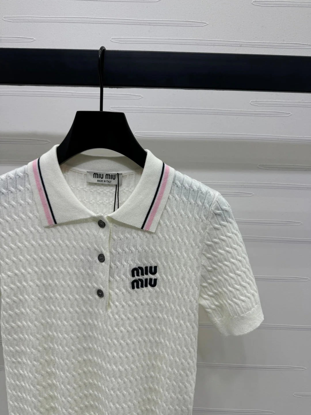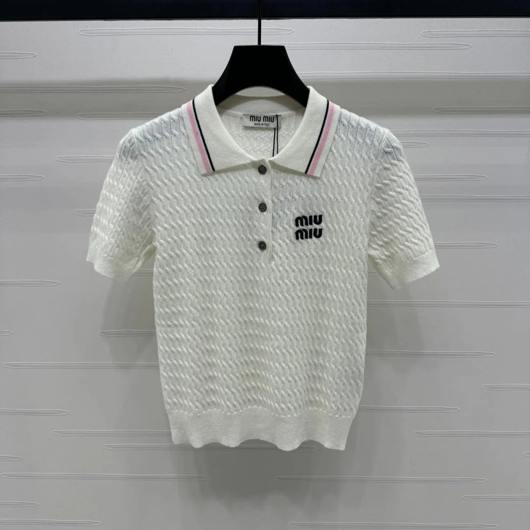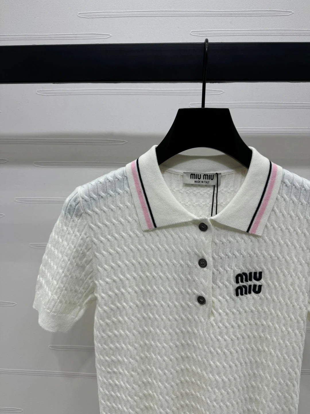 MIUMIU KNITTED POLO SHIRT WHITE 274837
