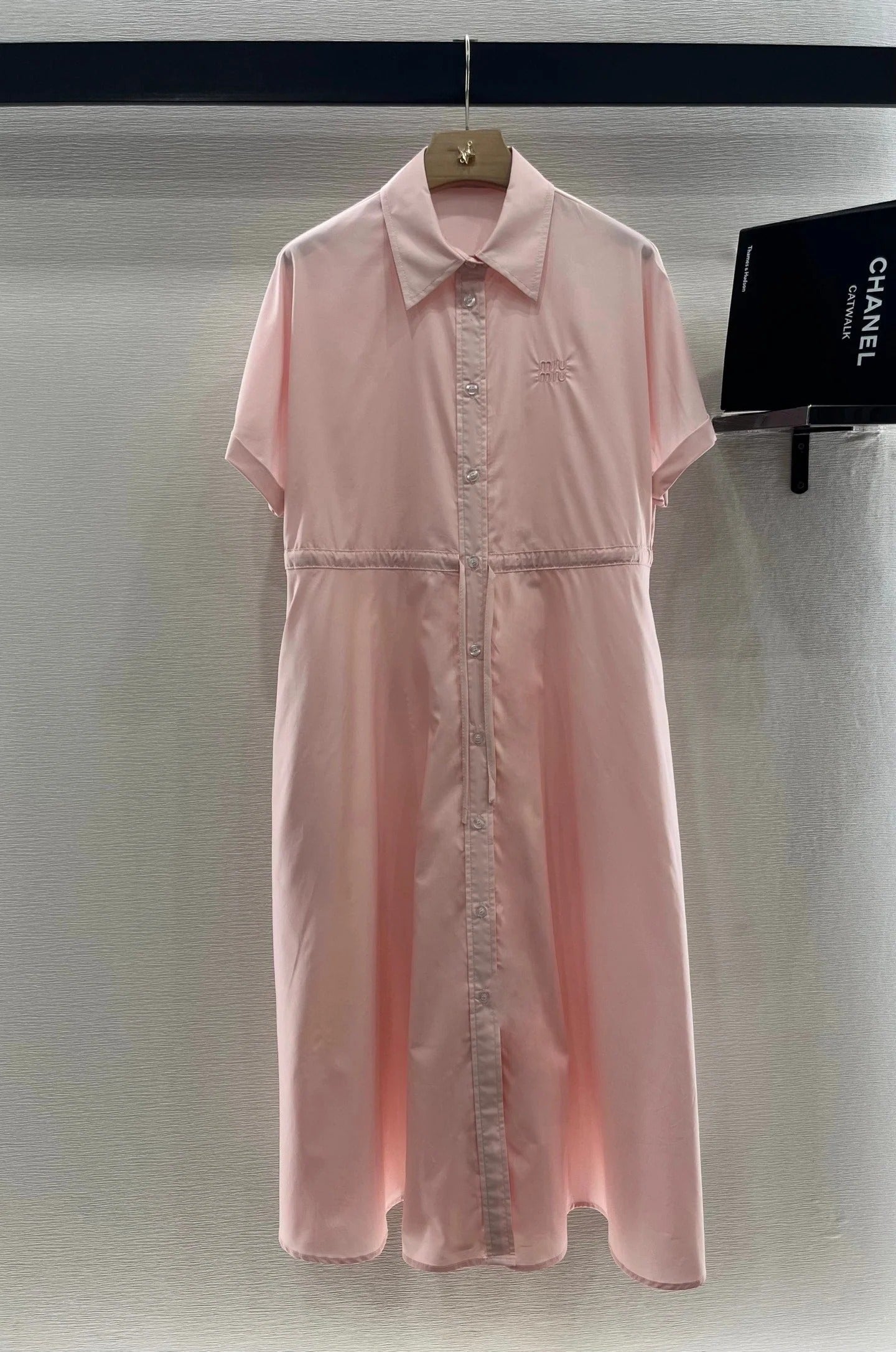 MIUMIU LIGHT PINK DRESS WITH DRAWSTRING WAIST