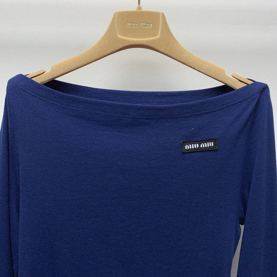MIUMIU OFF-SHOULDER LOGO T-SHIRT 268133