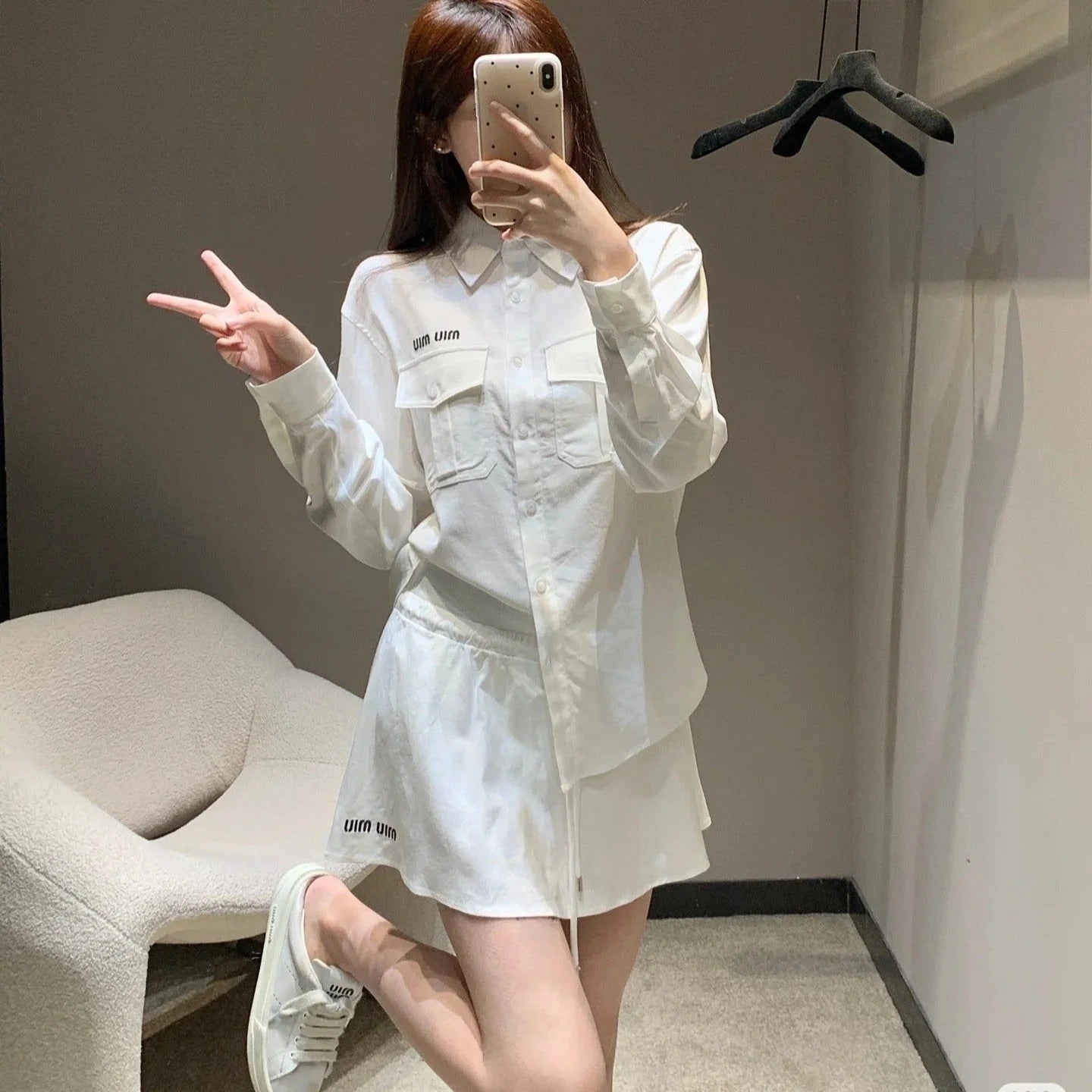 MIUMIU SHIRT AND SKIRT SET STYLE 28