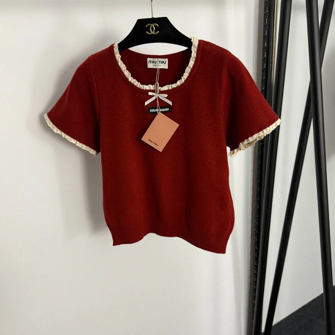 MIUMIU SHORT-SLEEVE KNIT TOP STYLE 386