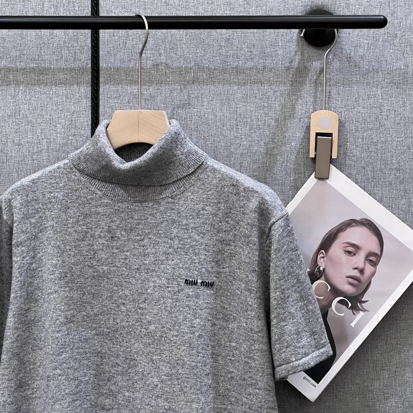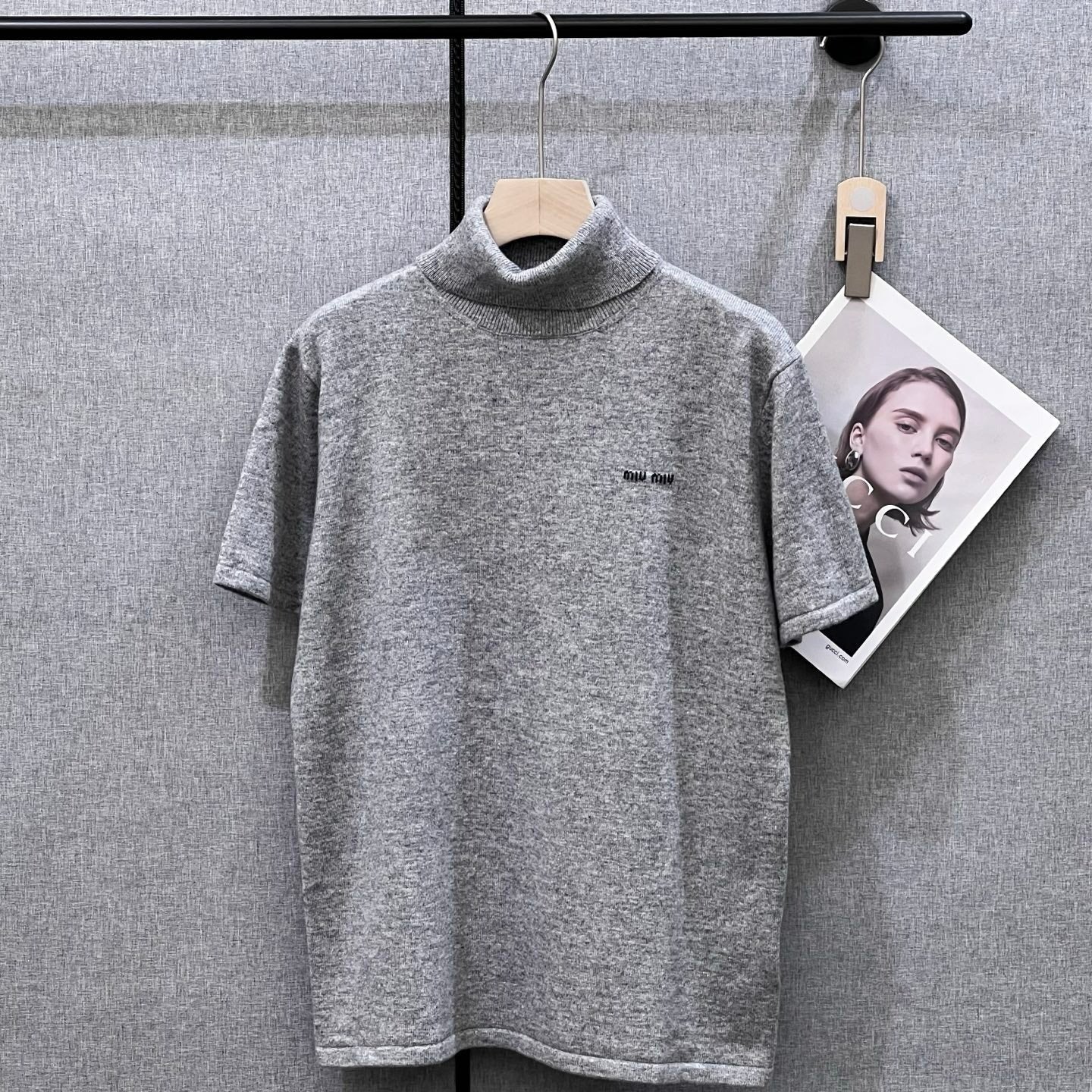 MIUMIU SHORT-SLEEVE TURTLENECK KNIT TOP STYLE 389
