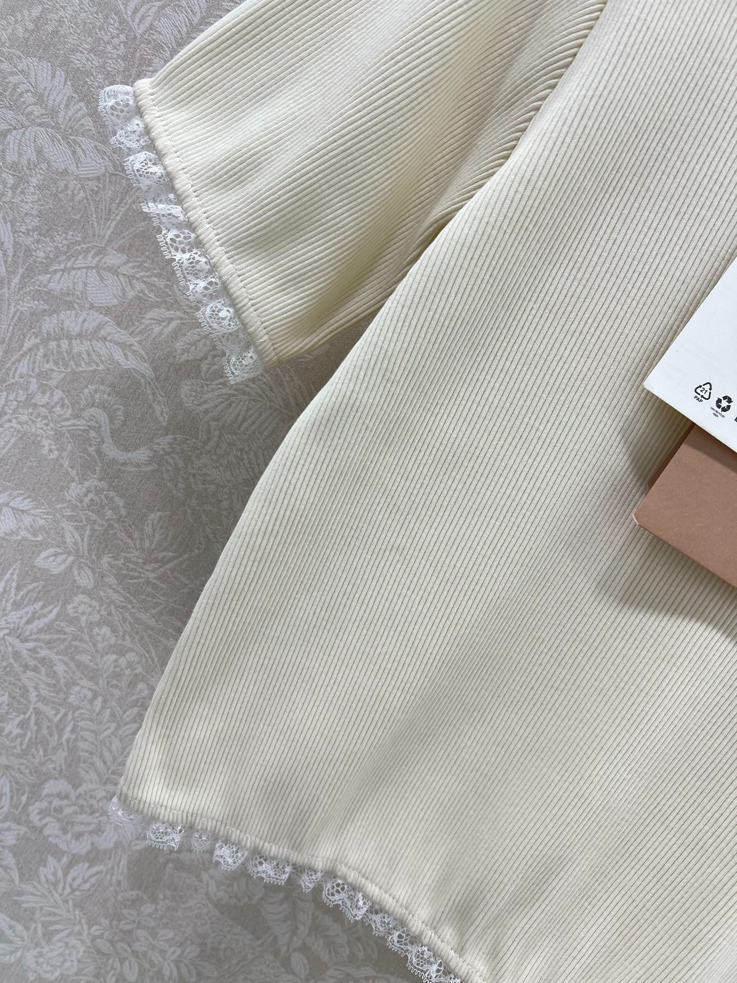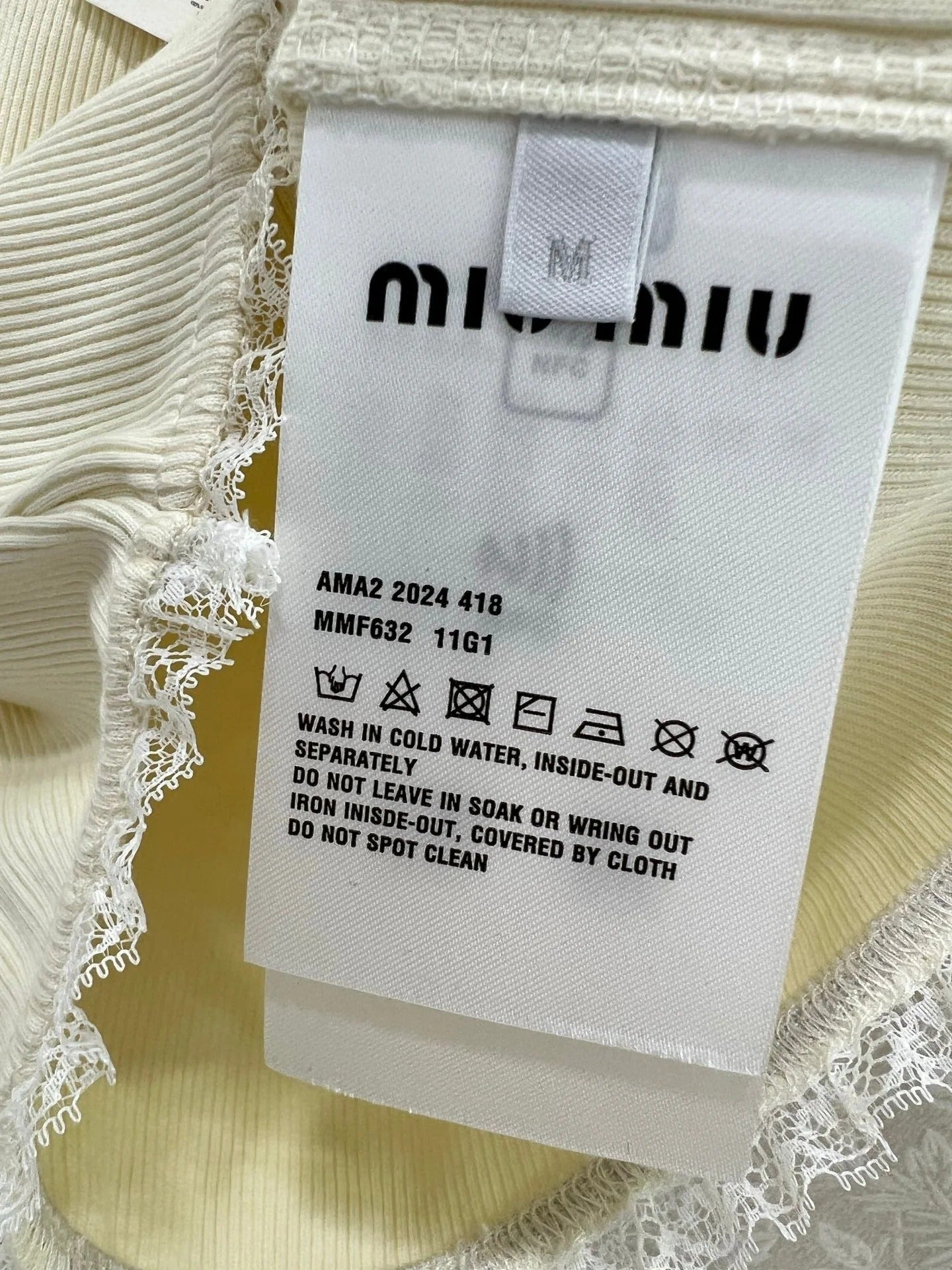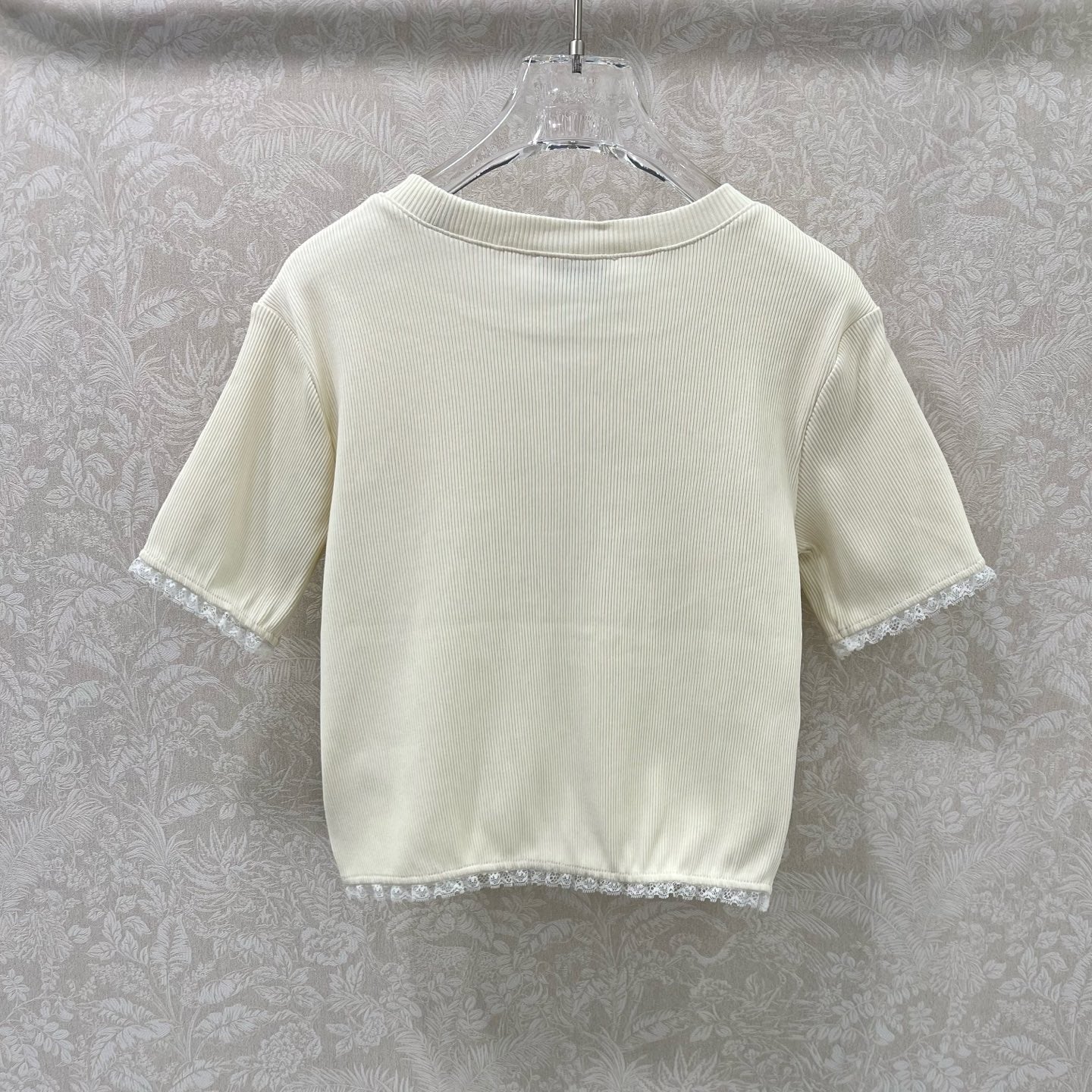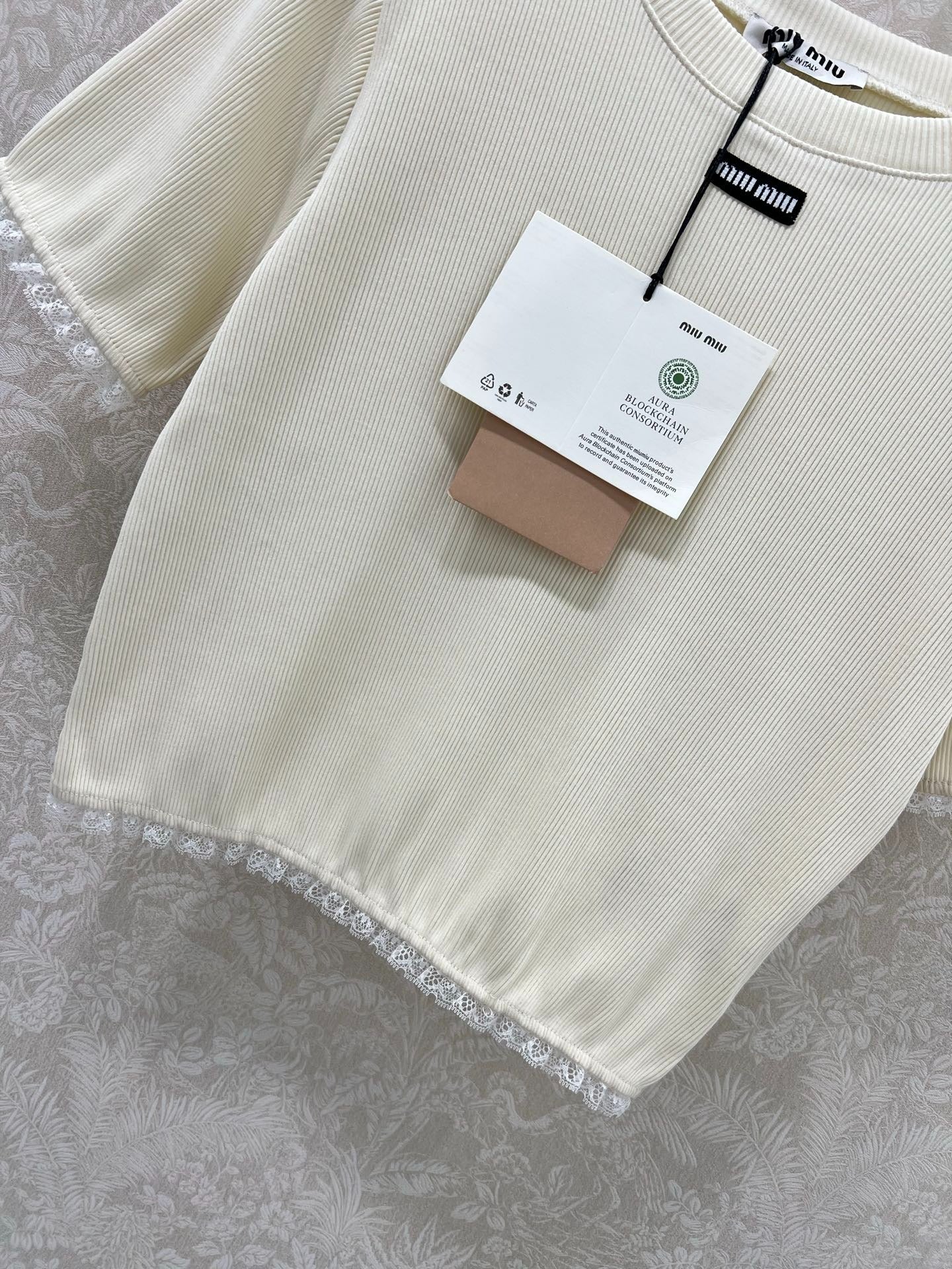 MIUMIU TEXTURED SHORT-SLEEVE LACE TOP 275100