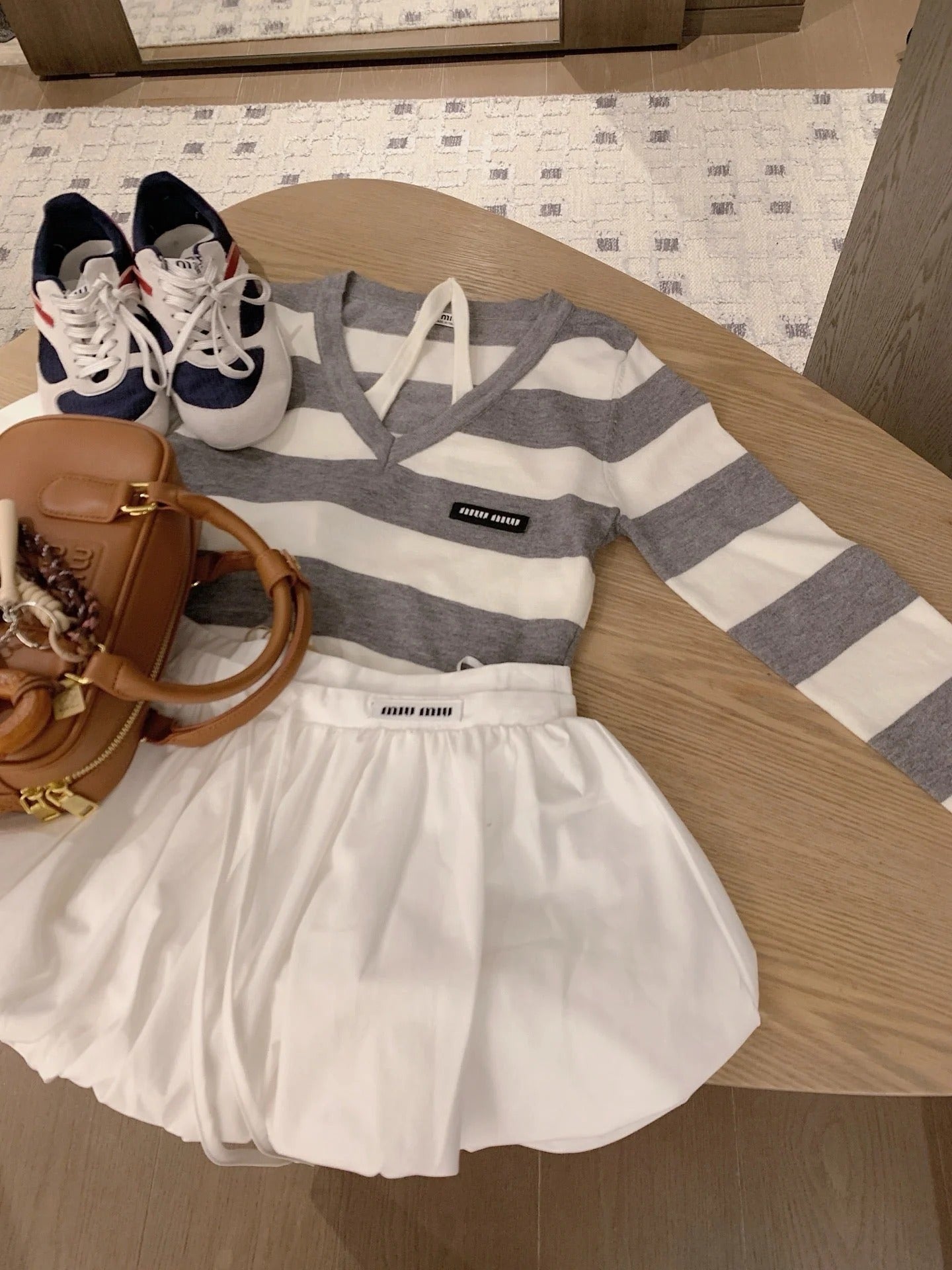 MIUMIU TOP AND SKIRT SET STYLE 443
