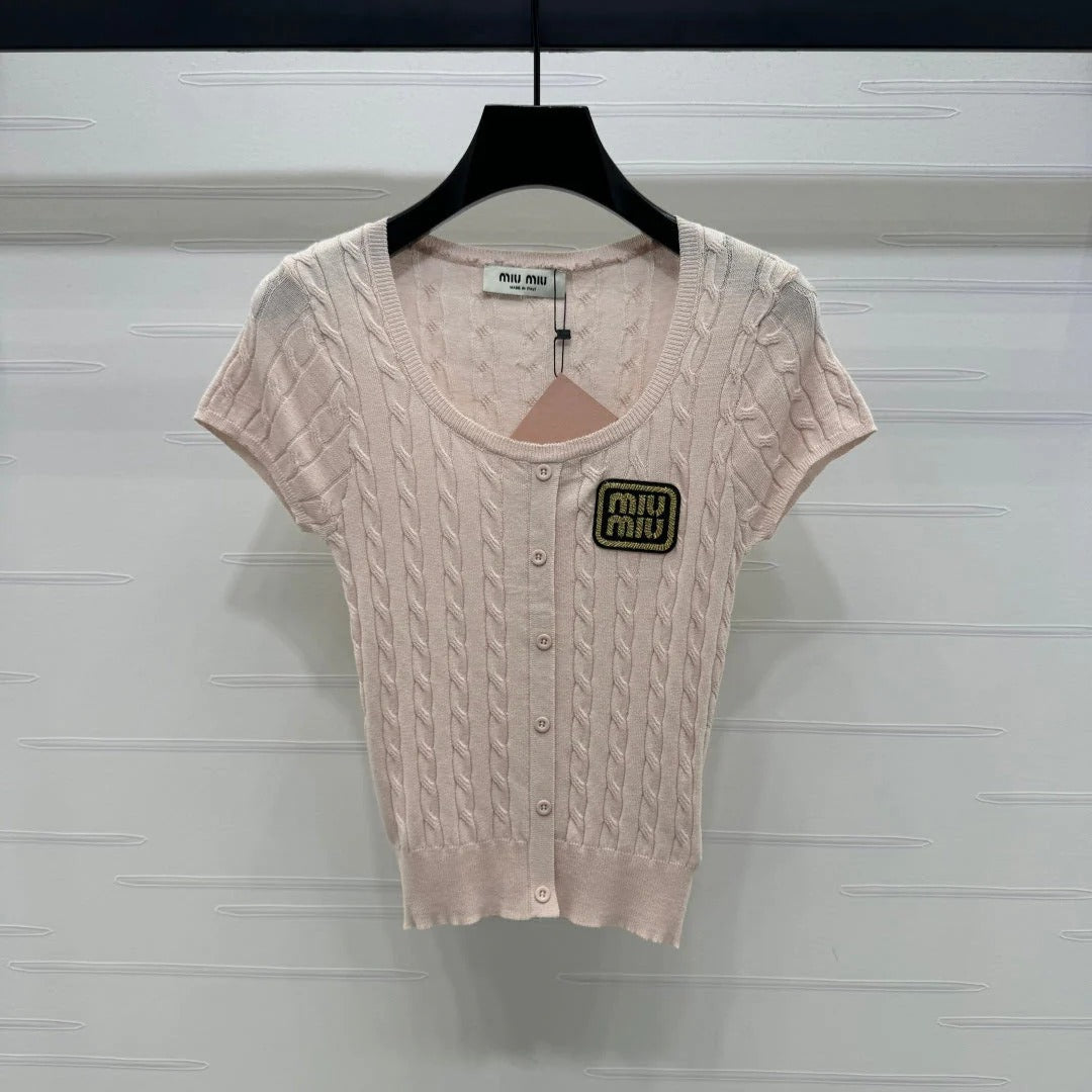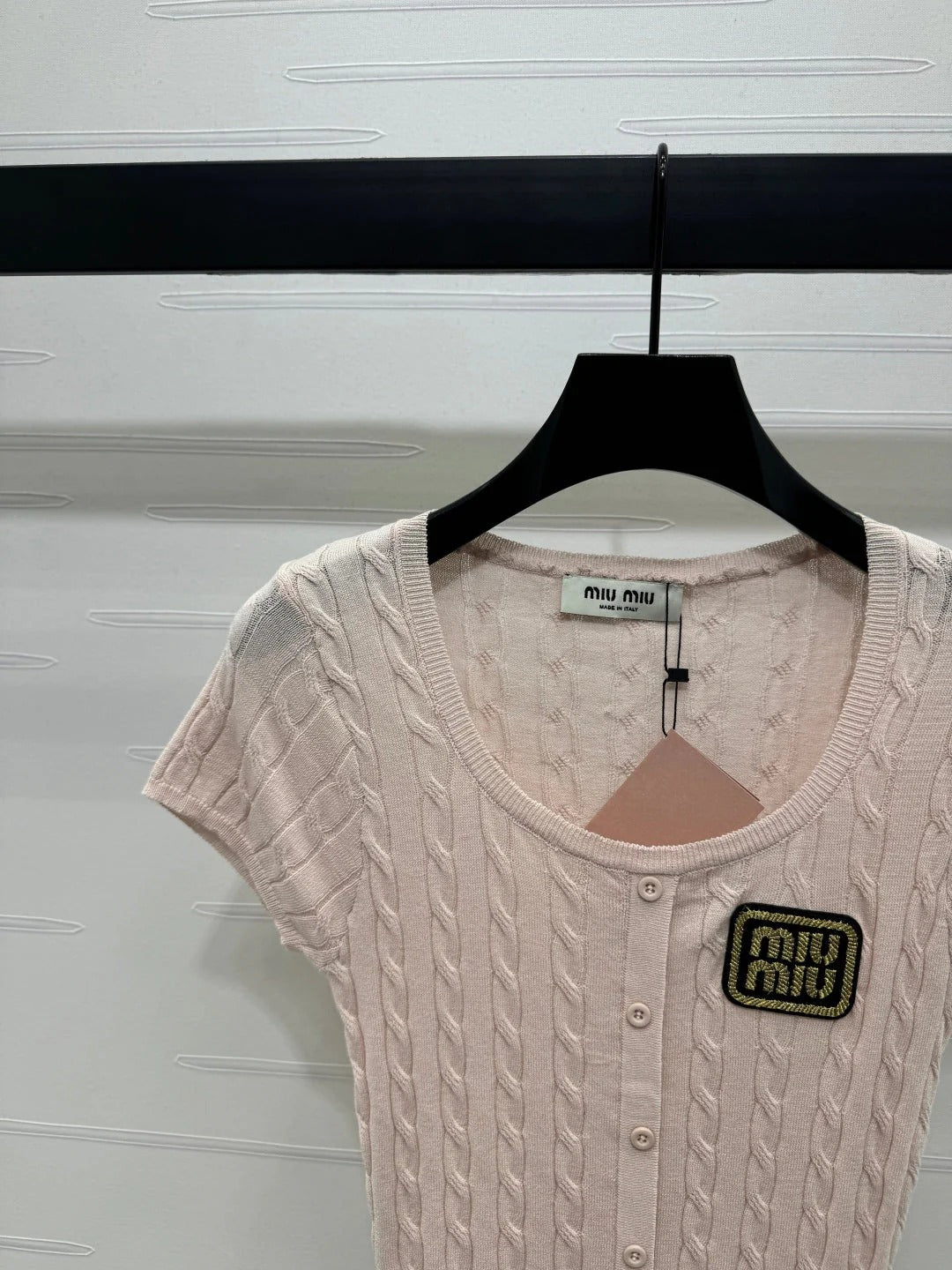 MIUMIU U-NECK KNITTED SHORT-SLEEVE TOP PINK 274947