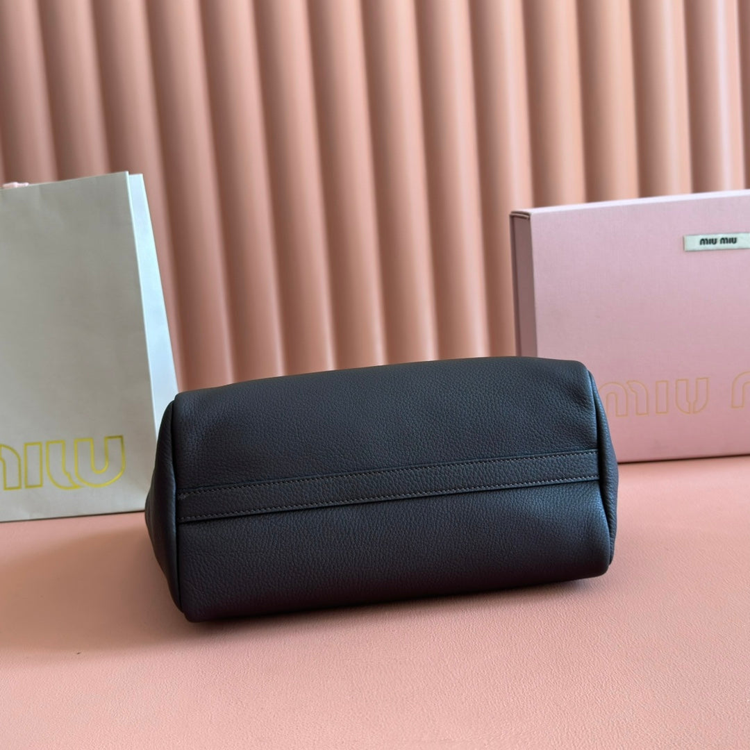 Miu 25ss Leather Bucket Bag 25.5 Black Grain Leather