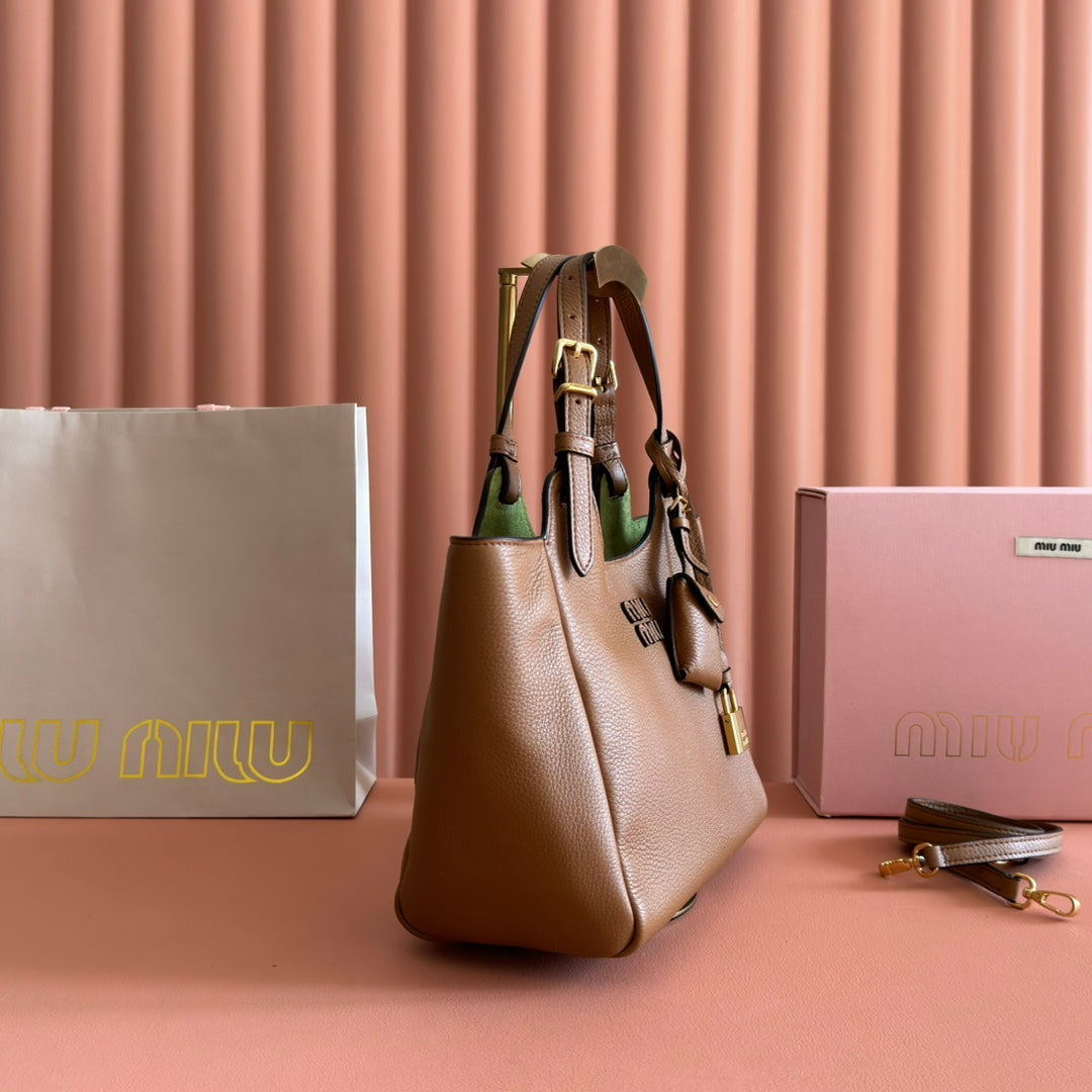 Miu 25ss Leather Bucket Bag 25.5 Brown Grain Leather