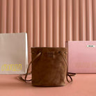 Miu Bucket Bag 14cm Brown Suede