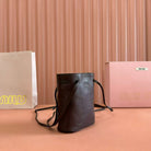 Miu Bucket Bag 14cm Coffee Grain Leather