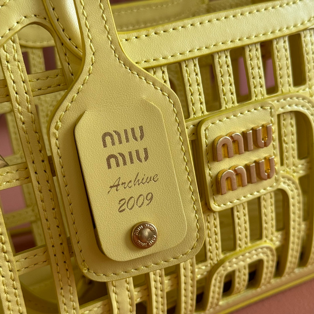 Miu Leather Basket Bag 24cm Lemon Yellow Cowhide 255473