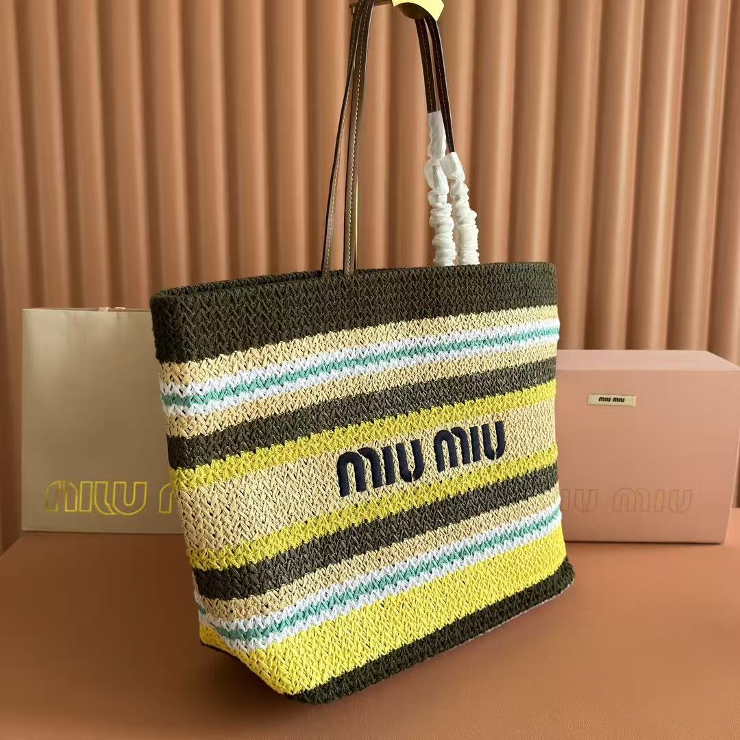 Miu Tote Bag 40cm Raffia-Effect Woven