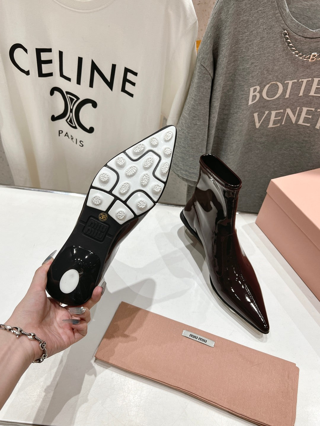 Miu Ankle Boots Pointed Toe Red Brown Lambskin