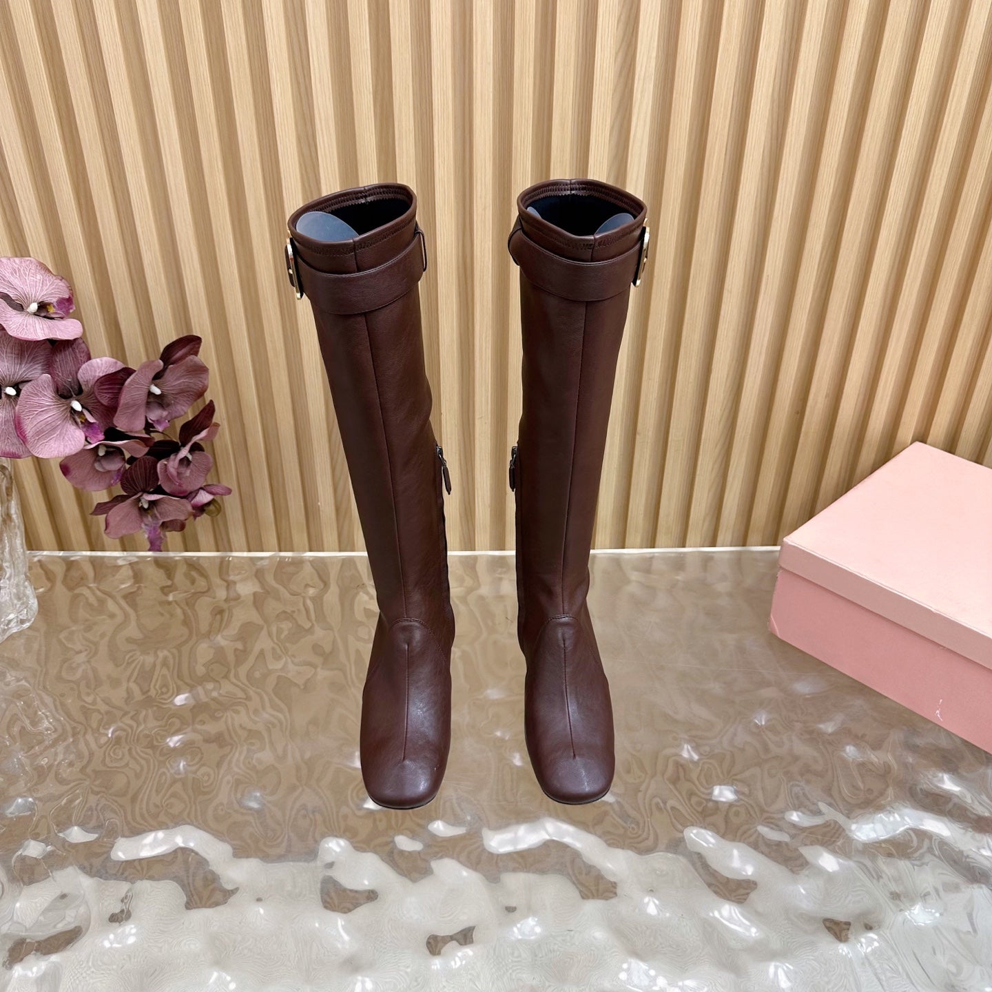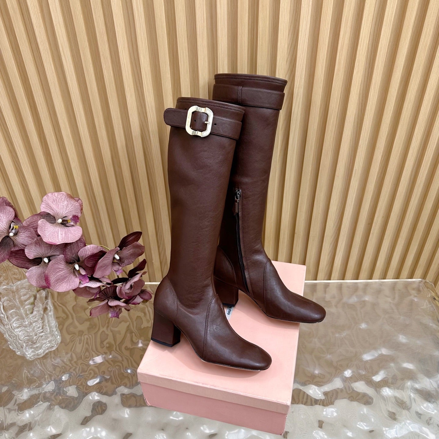 Miu Boots With Buckle Deep Reddish Brown Nappa Leather 498181